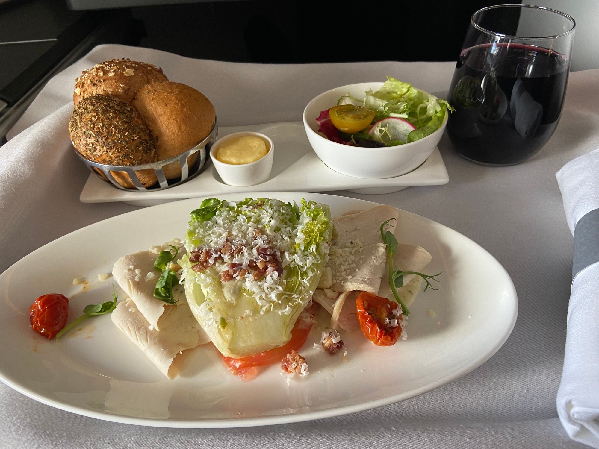 Outbound leg, LHR - SFO 4/10/24 - Chicken Caesar, ok