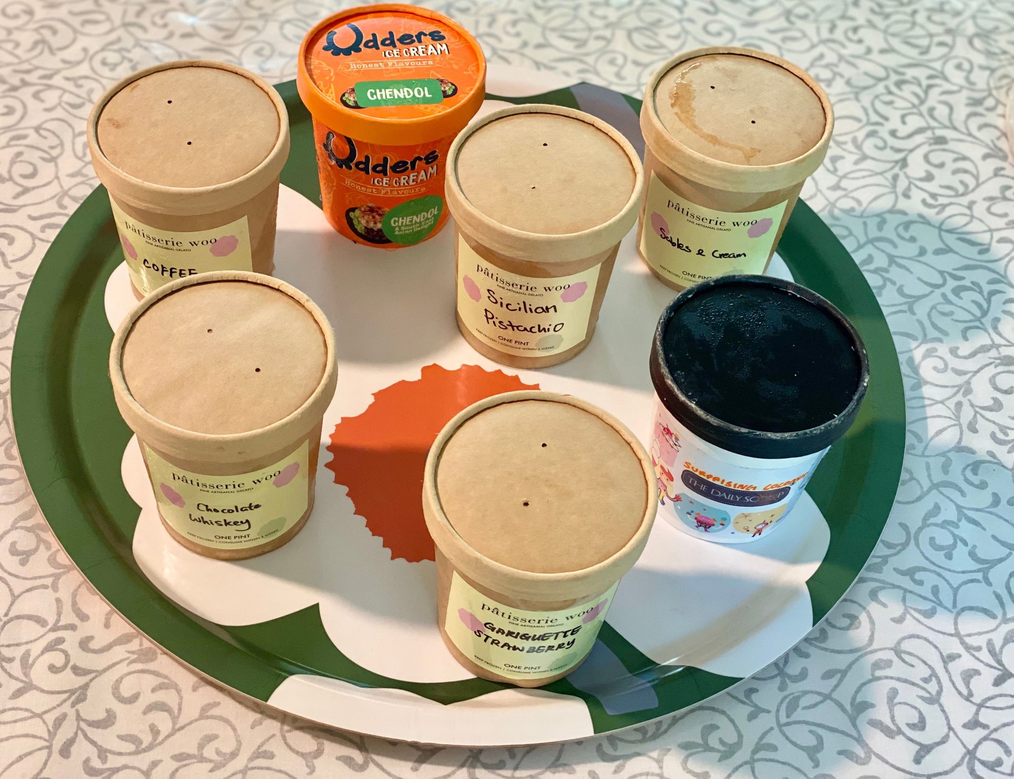 Home cooked except for the laksa , Hokkien mee , kueh salat and ice creams .
