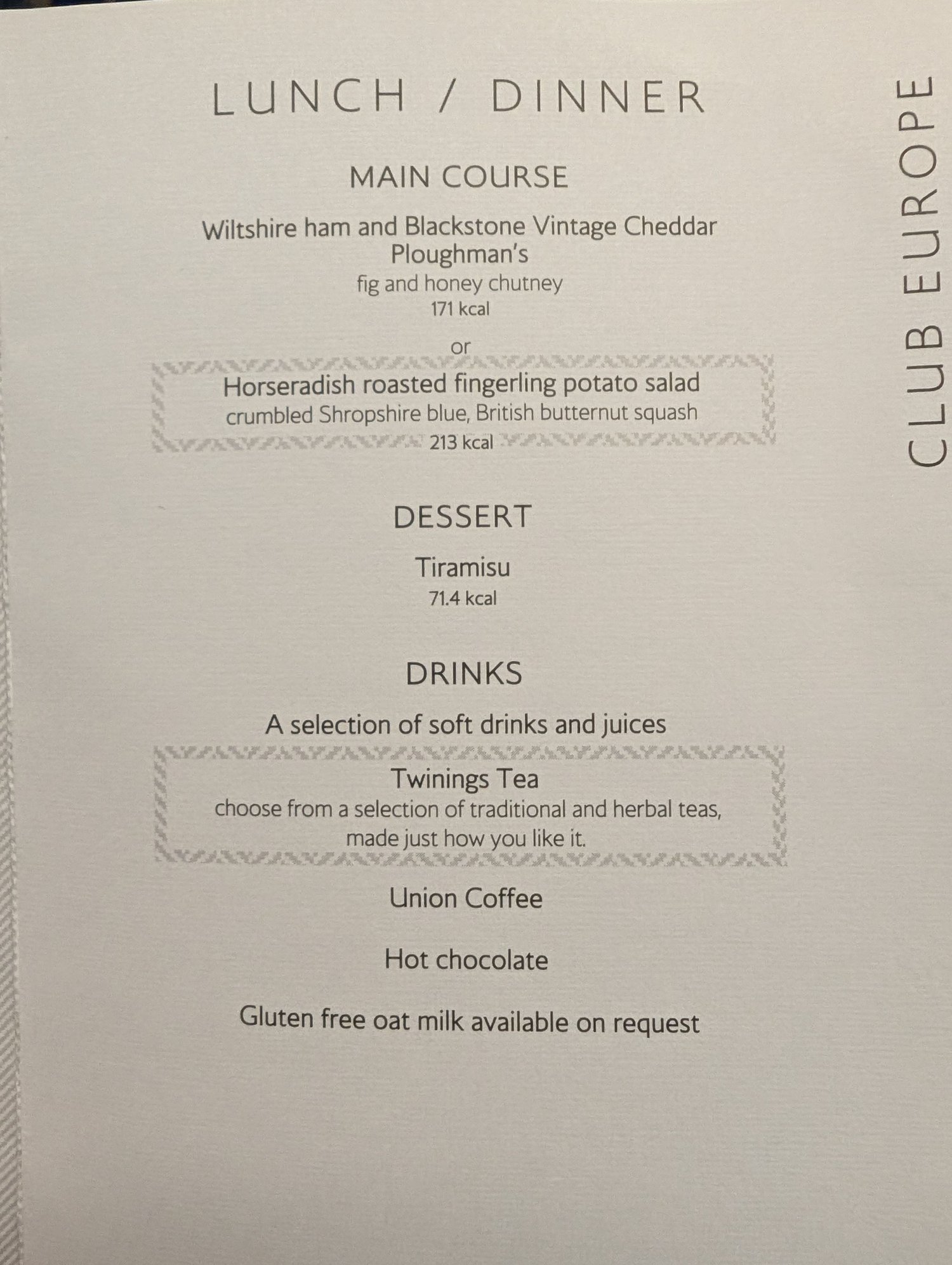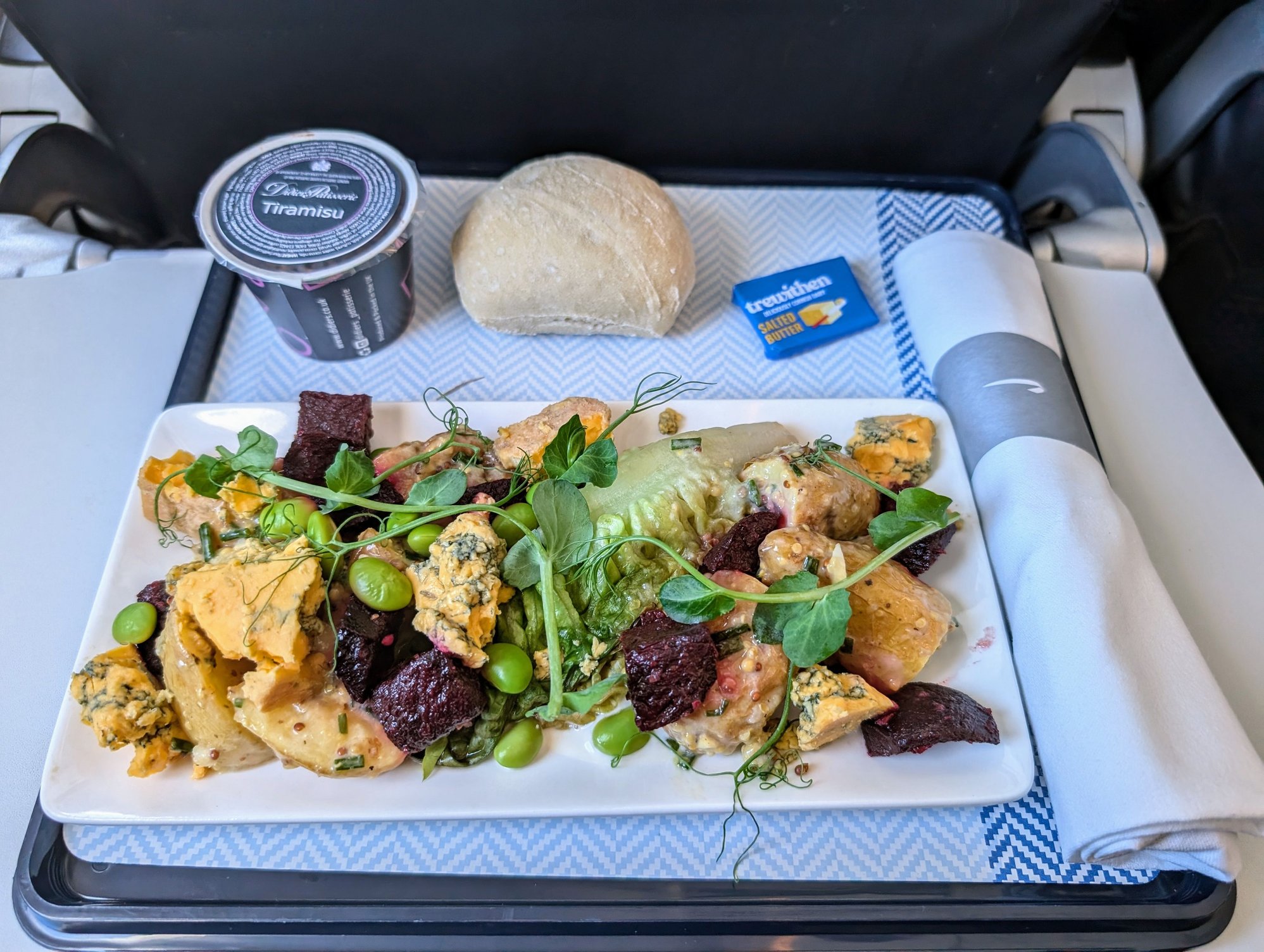 Glasgow to Heathrow, 12:45 departure. I chose the potato salad, although I thought I had misread the reference to fingerling at first!