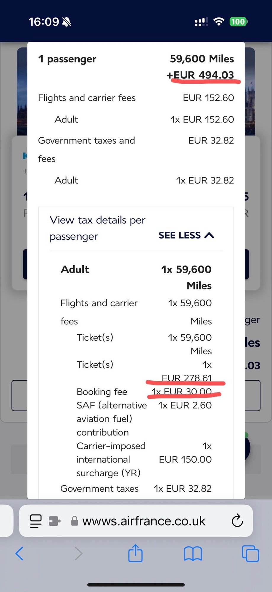 In addition to the booking fee I just spotted something even worse…