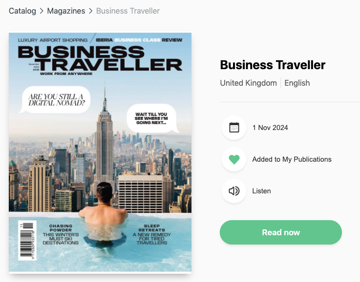 just to confirm that Business Traveller is still available if you use a library login - both reading online and for download to read offline