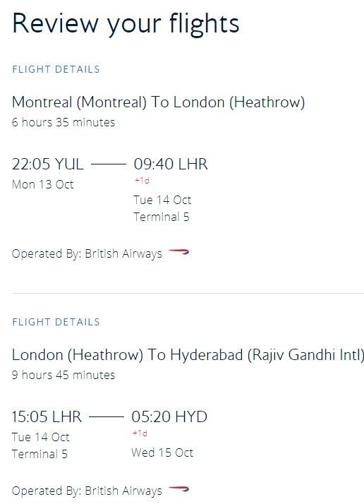 Many have said it is all the same, but when I go to the confirmation screen it shows the flights in two different ways. I am trying to attach screenshots from booking screen. One shows Journey as YUL-HYD in the header, the other one shows journey as "YUL-LHR" and "LHR-HYD".
