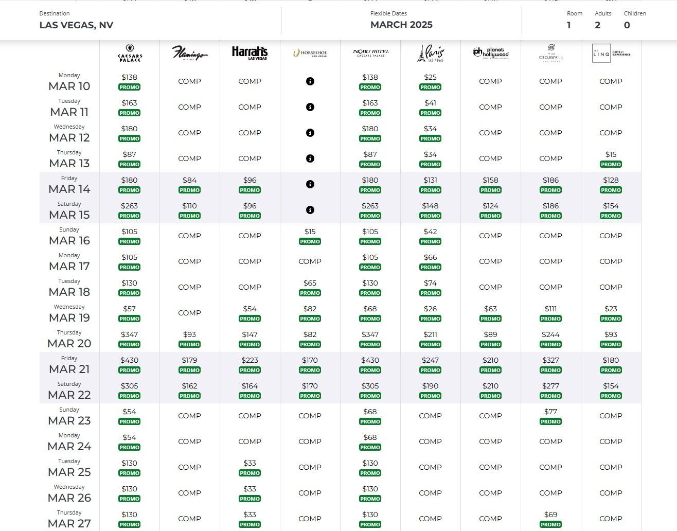 We are booked the Sunday of the first weekend of March Madness all through the Sweet 16 and Elite 8 games for $150 bucks at Paris .............now it will be $150 plus 8 night resort fees but still dirt cheap IMO.