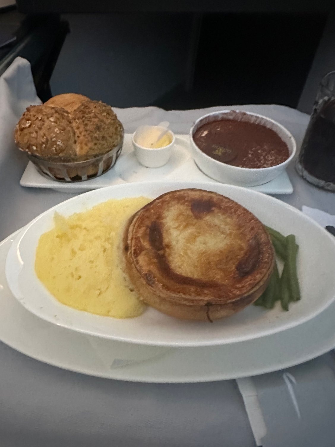 I know there have been a lot of issues with the food but, honestly, yesterday was pretty good. (A bit Indian centric but then I found the last route for this plane was BOM-LHR). The chicken was very tasty and the pie in second service was also good, if a little dry. It wasn't the dreaded brunch, which I had on the way to ORD last month, so not sure what the change was for.