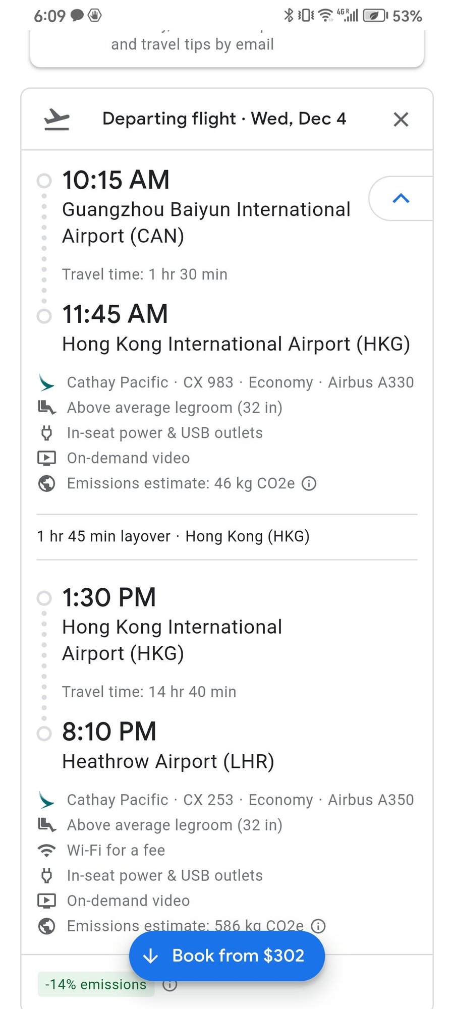 Thank you. I assume I must have a flight out of china instead of the train. Such as a flight from Guangzhou to Hong Kong (would prefer the train option due to the lower cost).