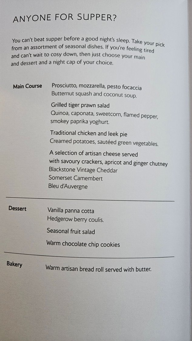 BA59 late night to CPT "supper" menu tonight coupled with quite a lot of angry passengers who were expecting something different (like cheese not being a main course).