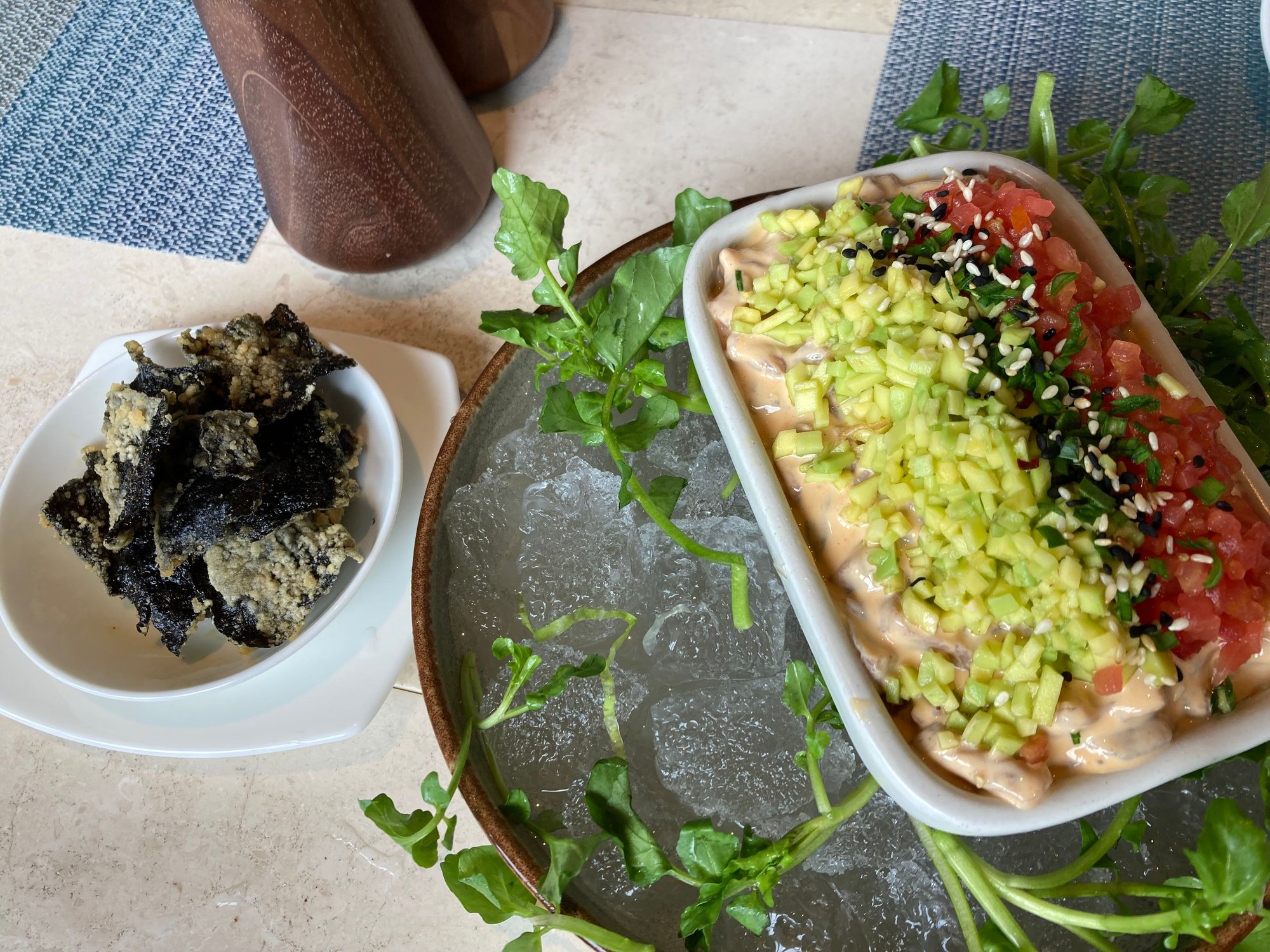 Fine chopped beef tossed with sriracha mayo, avocado, nori crisp