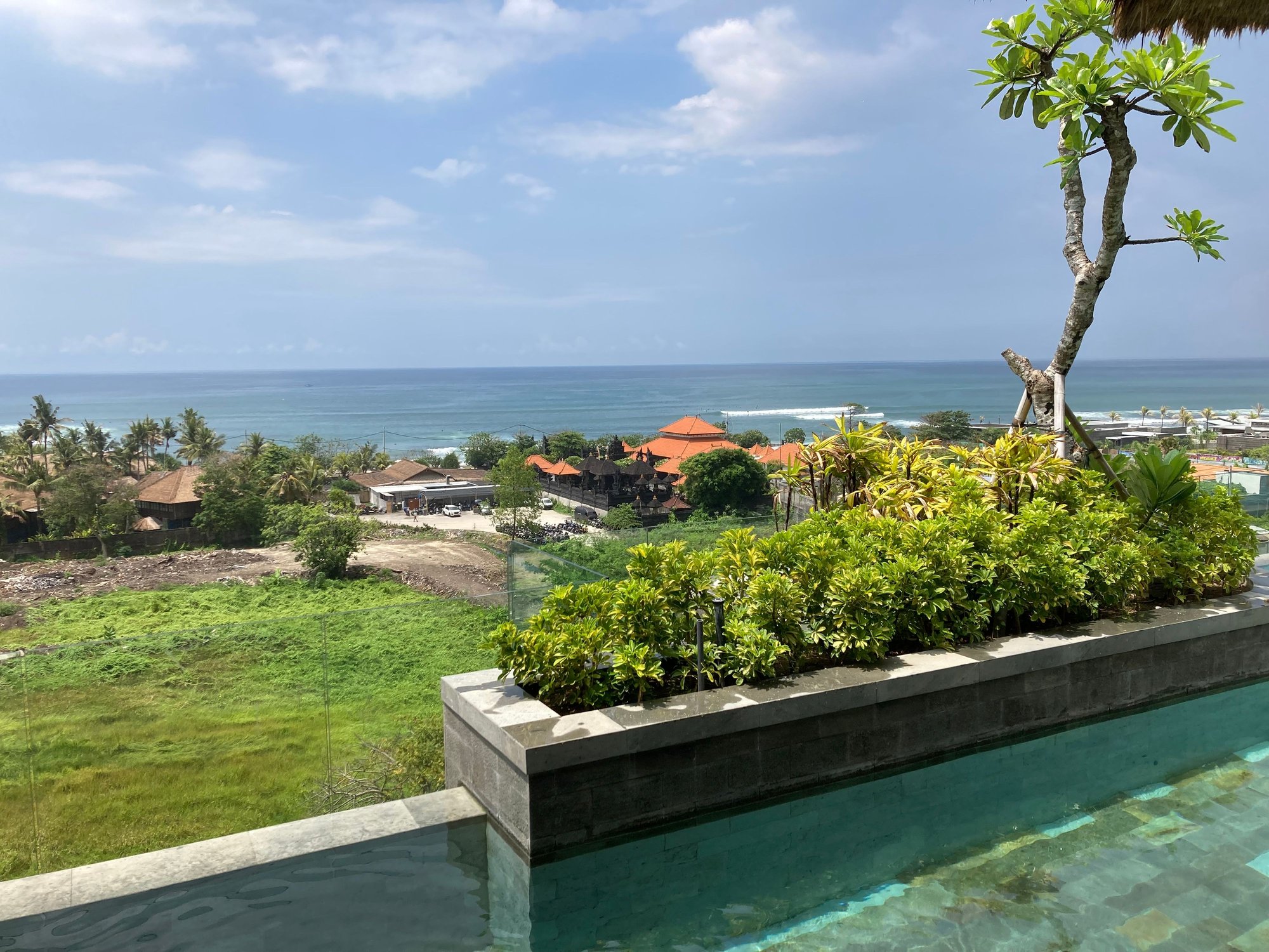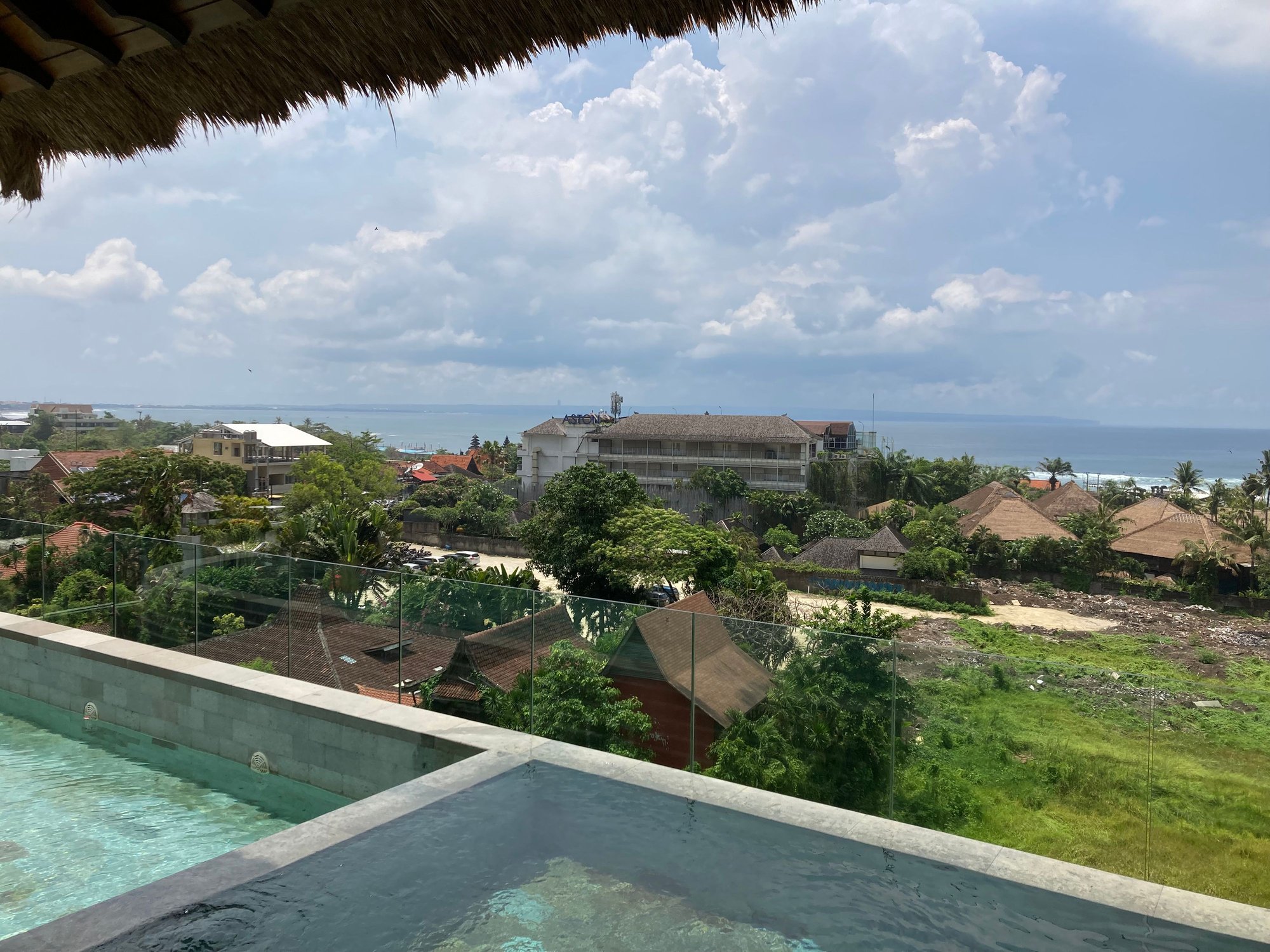 Left: West - sunset but also views of the building next door (Regent Canggu)