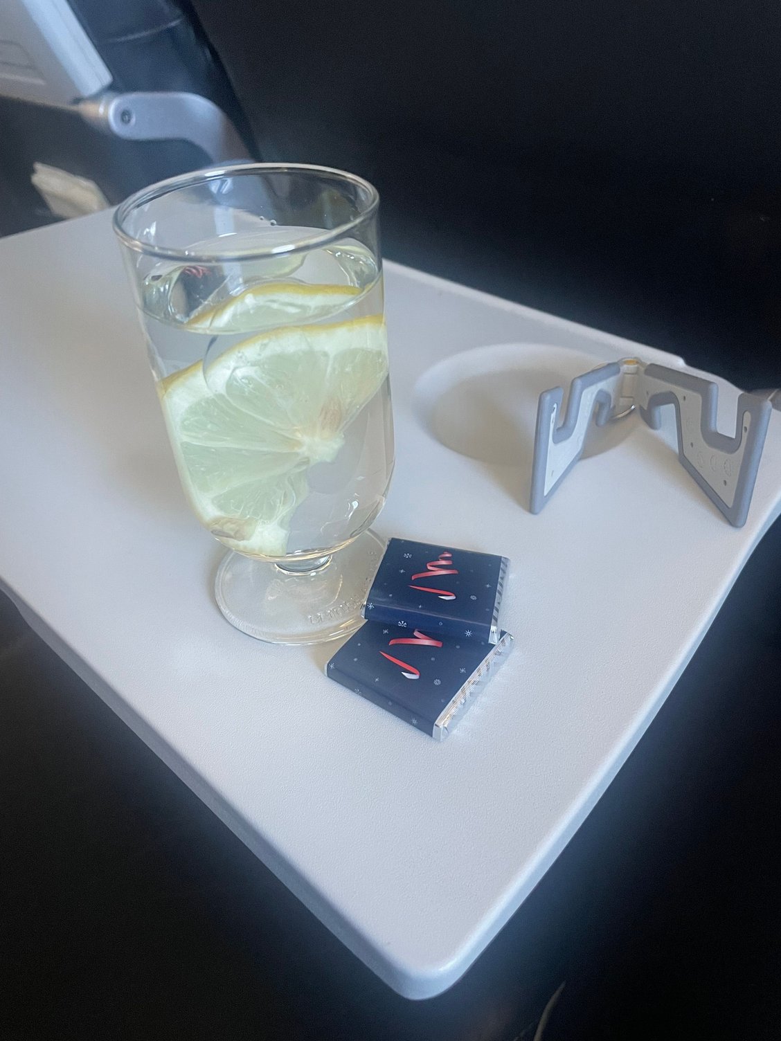 nevertheless, multiple drinks rounds, chocolate rounds, nut and biscuit rounds made a pleasant flight. Bottled water was handed out prior to taking off to de-ice. CC also came around with ice cold water with lemon in proactively during the flight.
