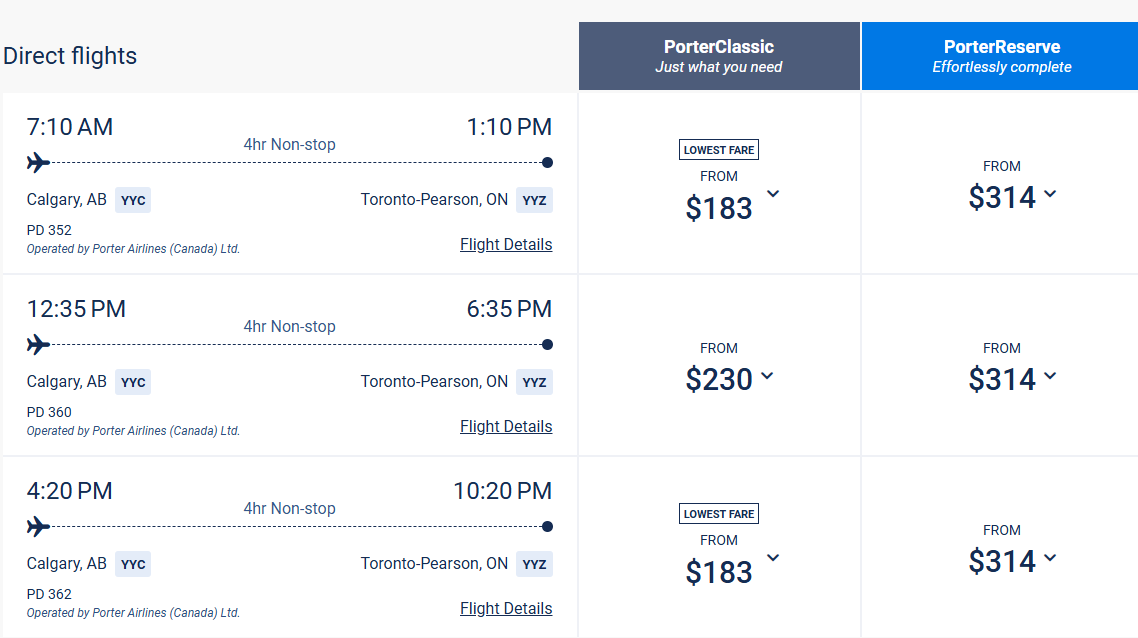 So, if the Porter PY experience is "subpar" to what WestJet offers (and I agree) ... you'll also notice that it is priced at a small fraction of what WS is pricing their, ahem, PY product at. $314 to $1097 is a pretty big price difference.