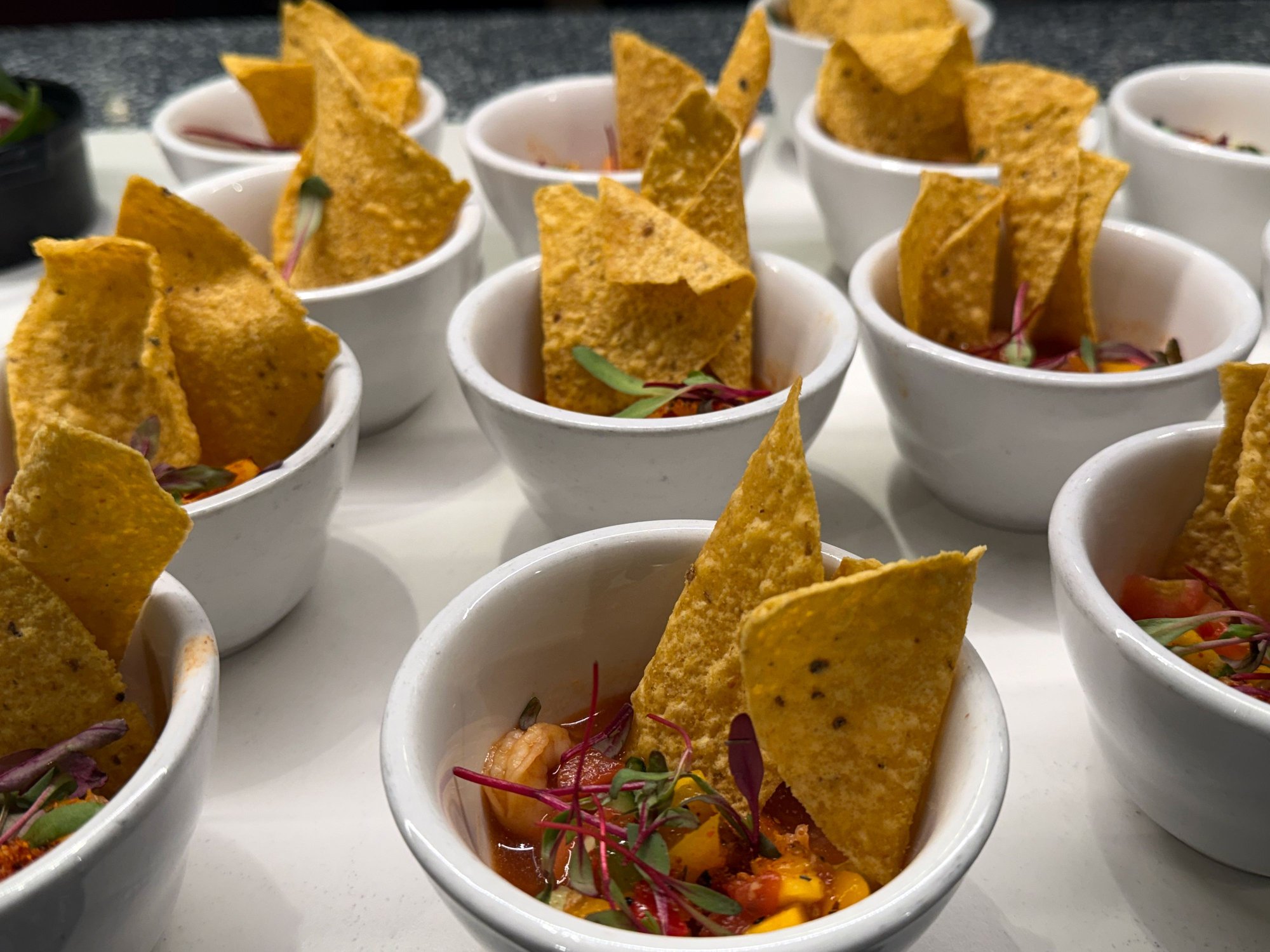 They had a couple of salads, a shrimp ceviche, chicken tikka with rice, brussel sprouts, and maybe another dish or two I'm forgetting. The croissants are better than the scones.