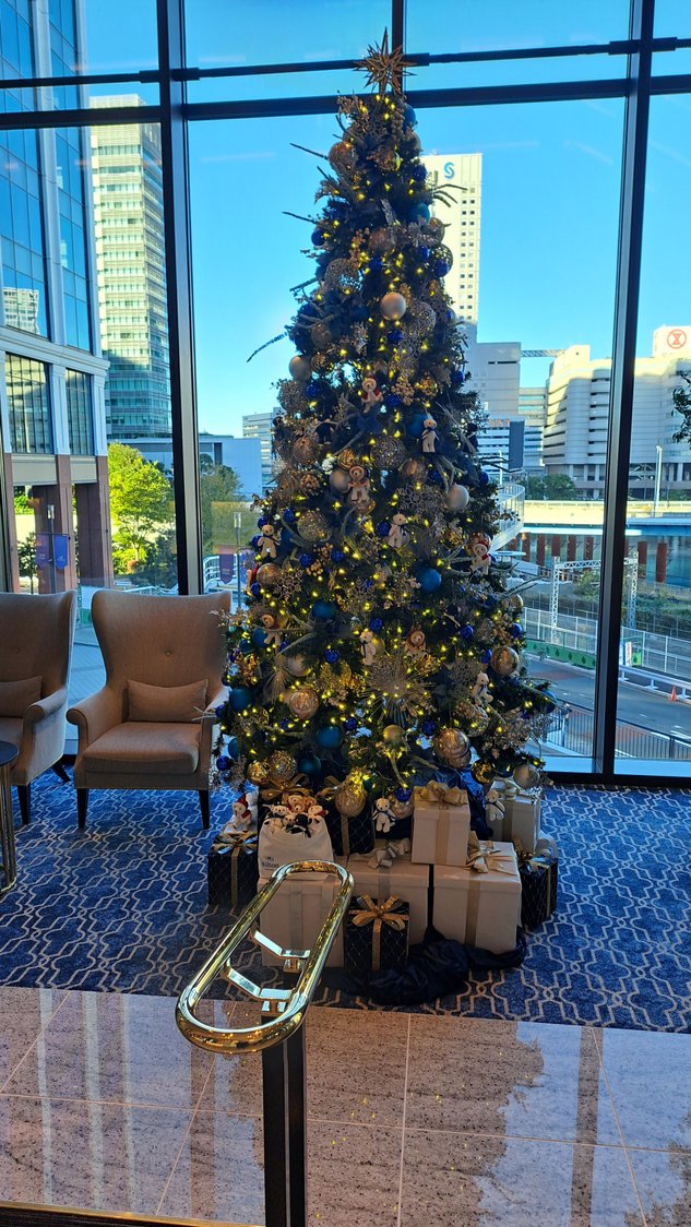 Christmas tree in lobby of Hilton Yokohama. The bears ( both normal and christmas versions ) also sold in the hotel shop