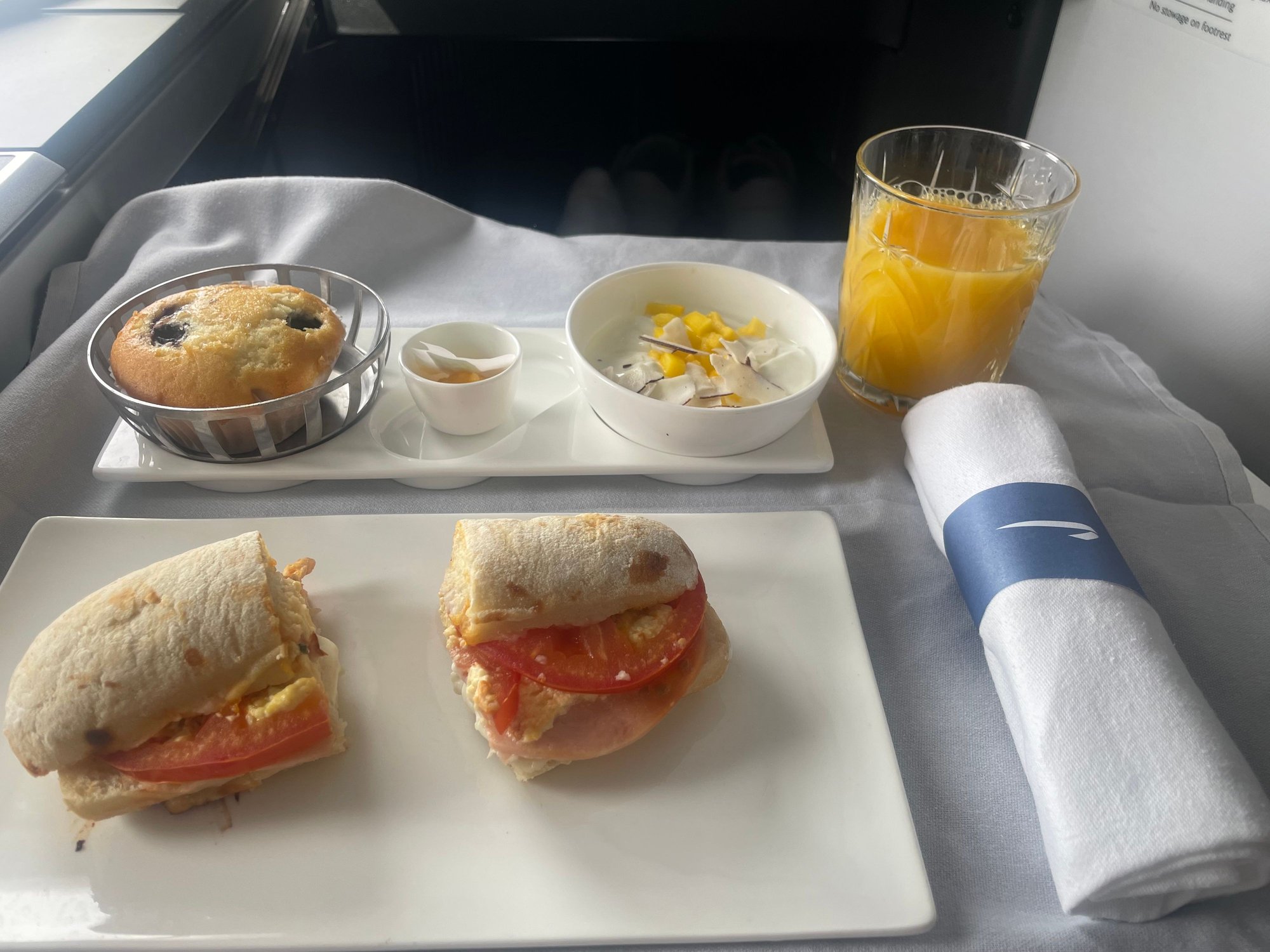 Over to Buenos Aires from Rio today with a departure time of 08:25. Quiet flight with only 31 in CW and the same great crew who I had ex-LHR on Wednesday night. Choice was a fruit platter or a turkey and scrambled egg ciabatta for this short sector (2h40m)