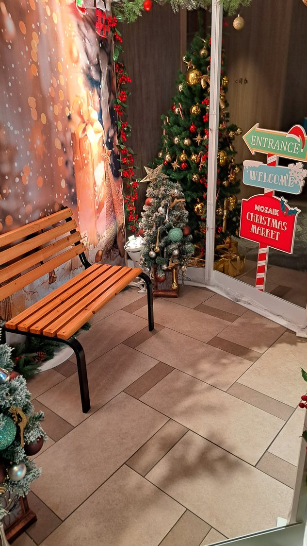 Christmas decoration in Mozaki breakfast restaurant. lots of other smaller decorations around the restaurant