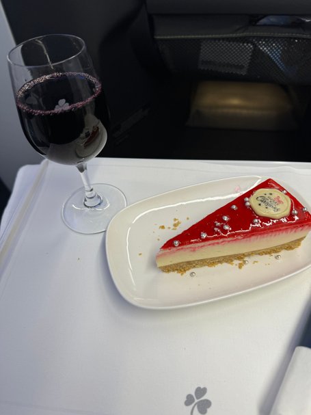 dessert (very good; unfortunately the couple in 4JK got the last two, so my wife in 5K was left with the cheese plate)