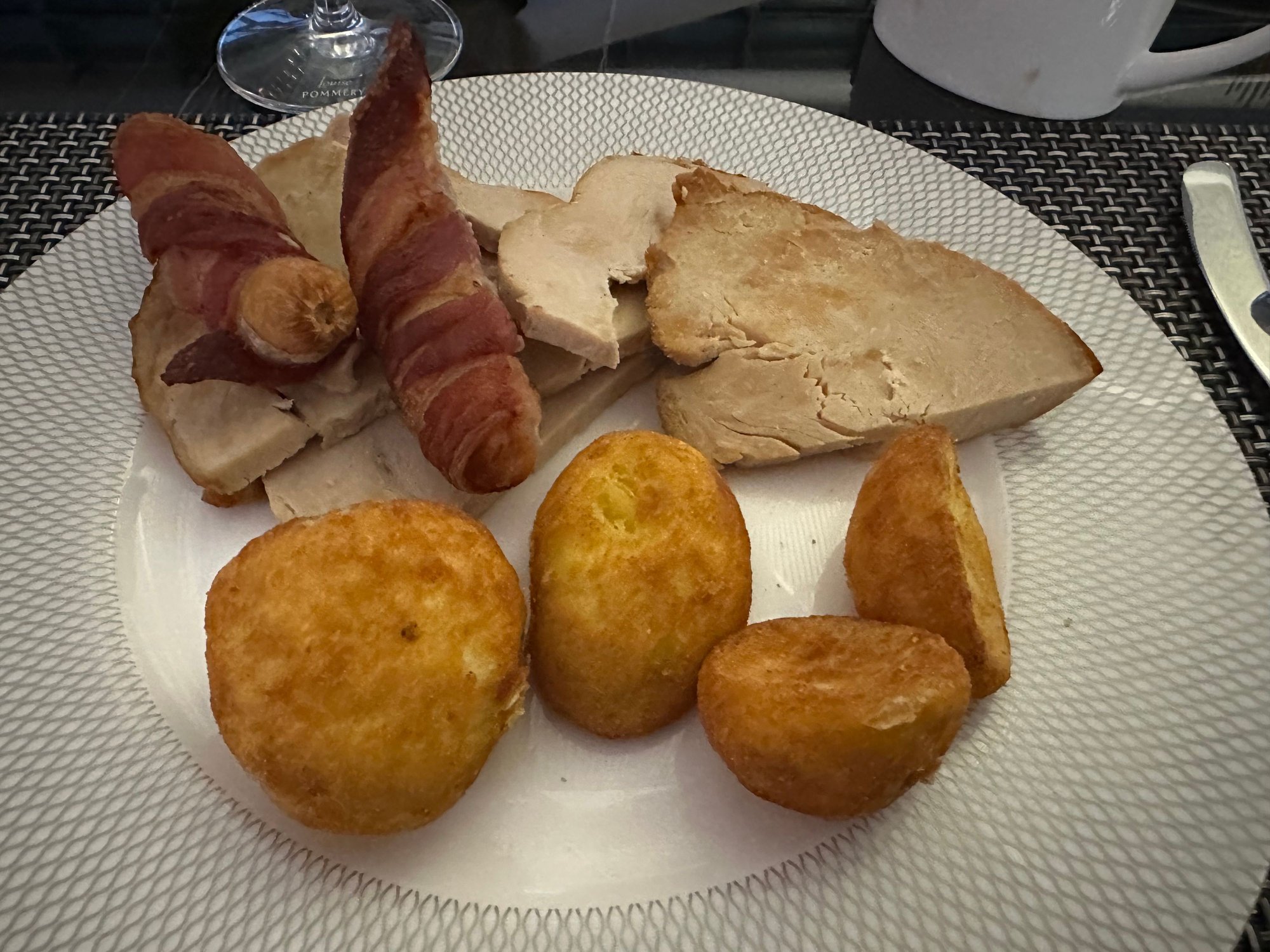 The leek and potato soup was tasty, albeit a little under seasoned. The turkey dinner was good overall, although the turkey being thinly machine sliced meant that it tended to crumble away as you tried to eat it. A glass of champagne or three helped to pass the time until I received a message they my friends had landed a little before 1pm.