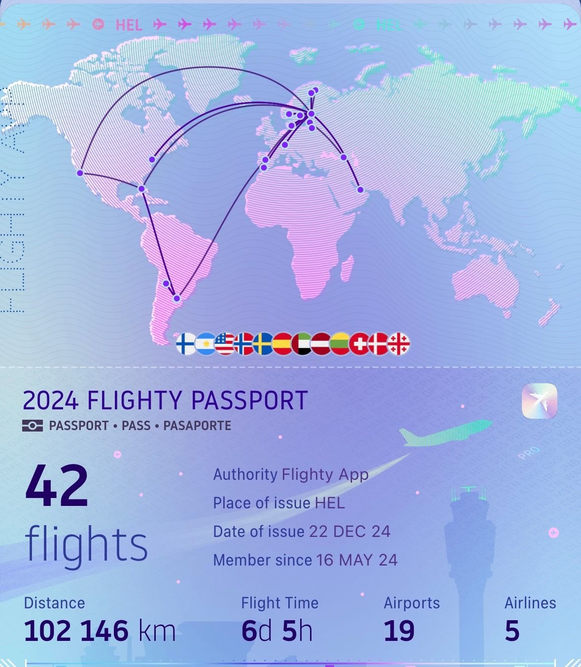 My first, and possibly last, year as Finnair Plus Platinum. More travel in sight for 2025 but mainly with points as I have found some relevant sweet spots that make sense even when buying points. Long haul business doesn’t really benefit so much from status that it would make sense for me to plan for it.
