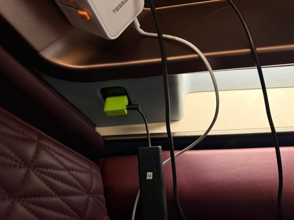 The TL;DR is that this is a substantial upgrade to the hard product, although I feel that improvements could be made to simplifying both the IFE UI and the WiFi connectivity (i.e., just give the pax a physical voucher again!). Having no storage access to your stuff while seated, or very limited with the table deployed, is a downside, but the seat is just so comfortable even in its default upright configuration. More power outlets than you'll ever need. No individual seat environmental controls.