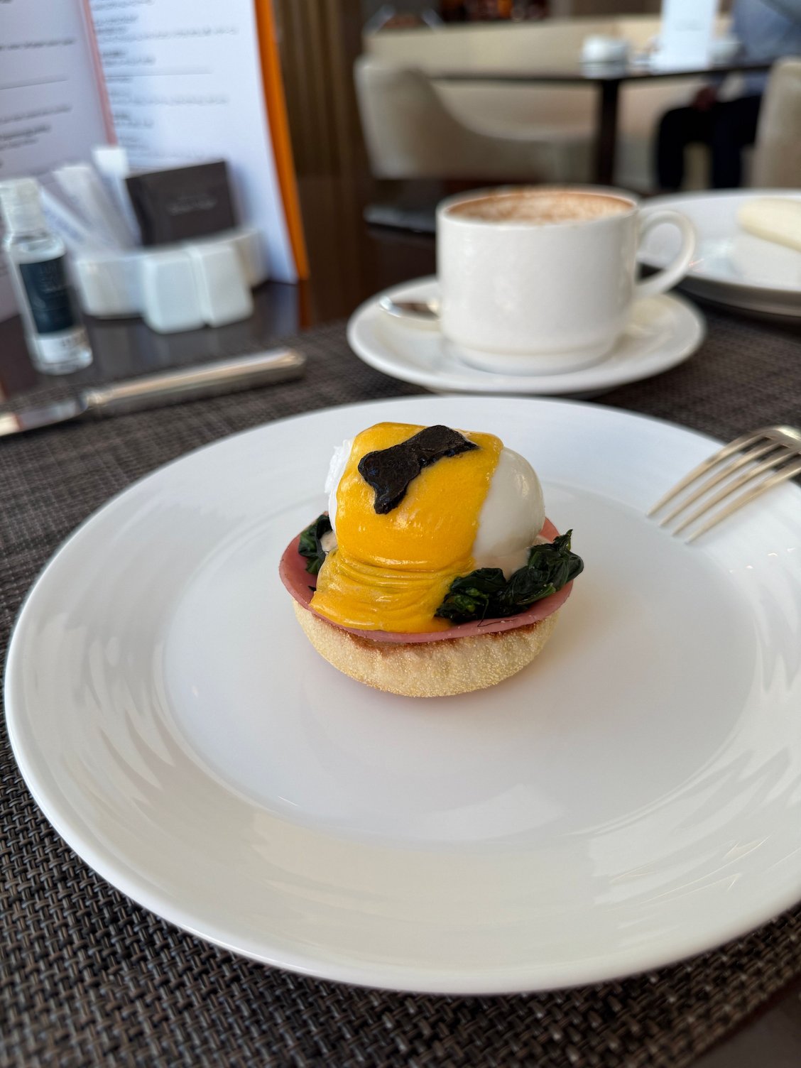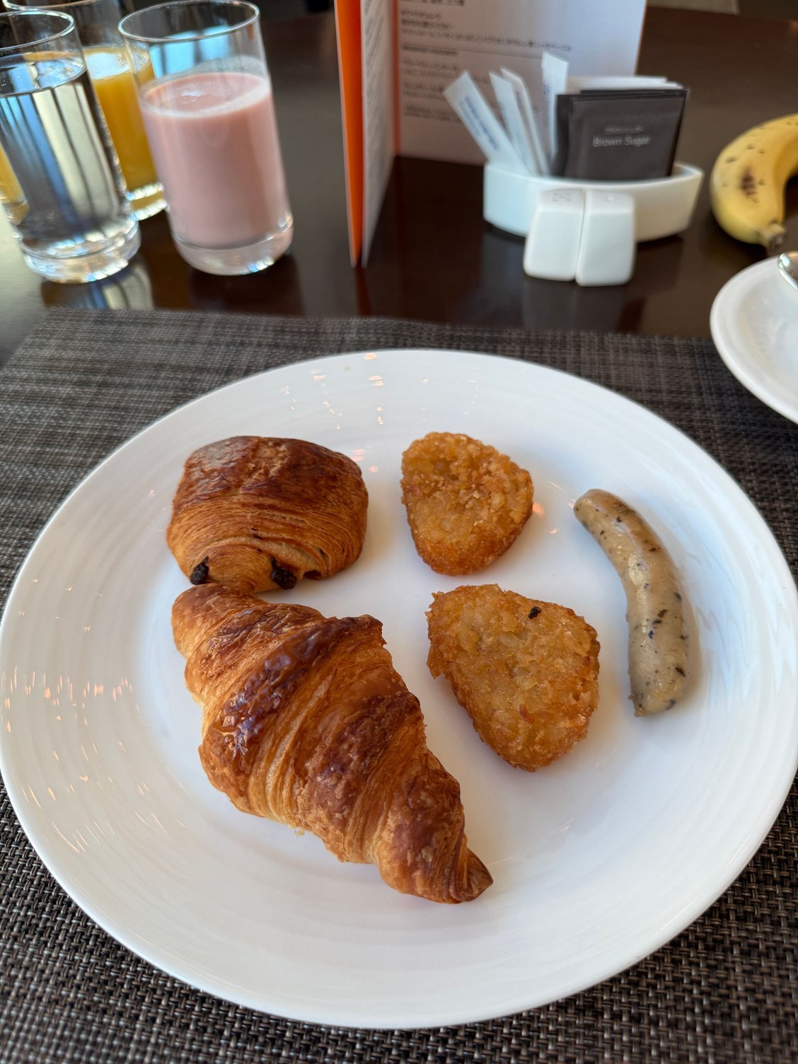 - Restaurant breakfast was great - fantastic lattes, good eggs Benedict, good hashbrowns, good sausages, not too chaotic but I went early