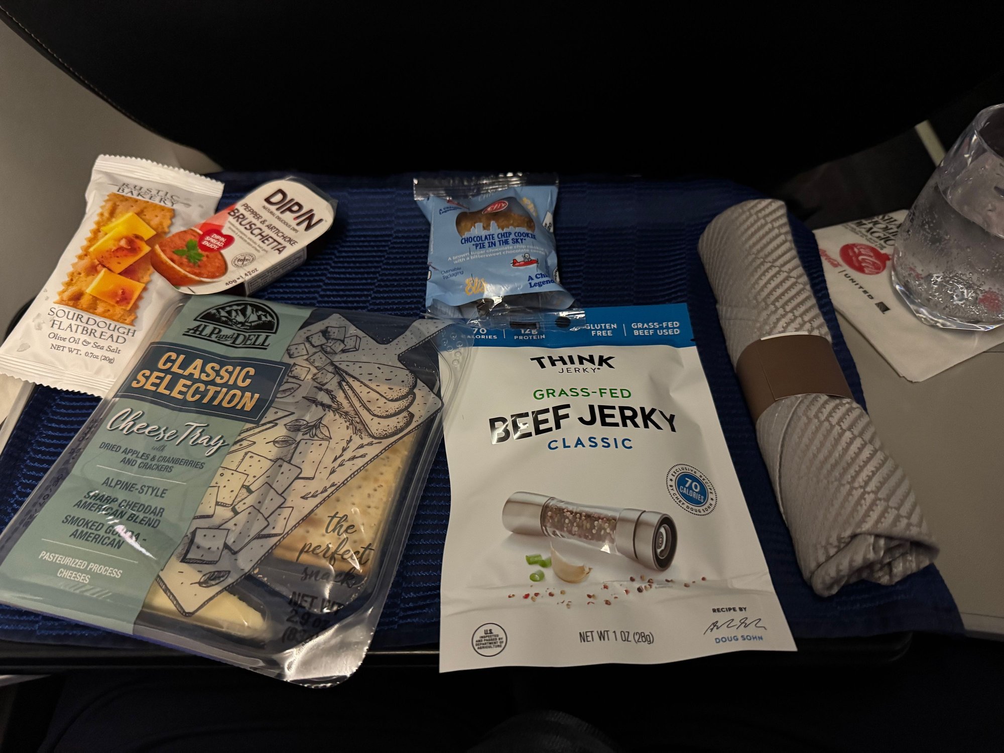 OK, now for a rant. Flew the evening ERJ 175 MSP-SFO. Paid First (Z). Happy to have the single window seat, good service all around. But come on folks. This flight is scheduled for almost five hours and leaves at 5pm local time, headed west. And we get a cheese snack blister pack in first!?!?!? I know there are no ovens on these jets, but AS/QX serves nice salads and cold sandwiches. Nuts could be served cold. Hot towels don't involve the oven. And this is just flat out not enough food for a flight this long at this time of day.