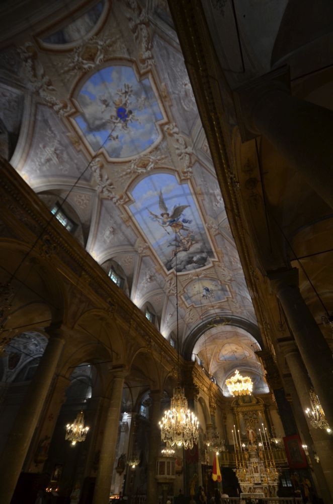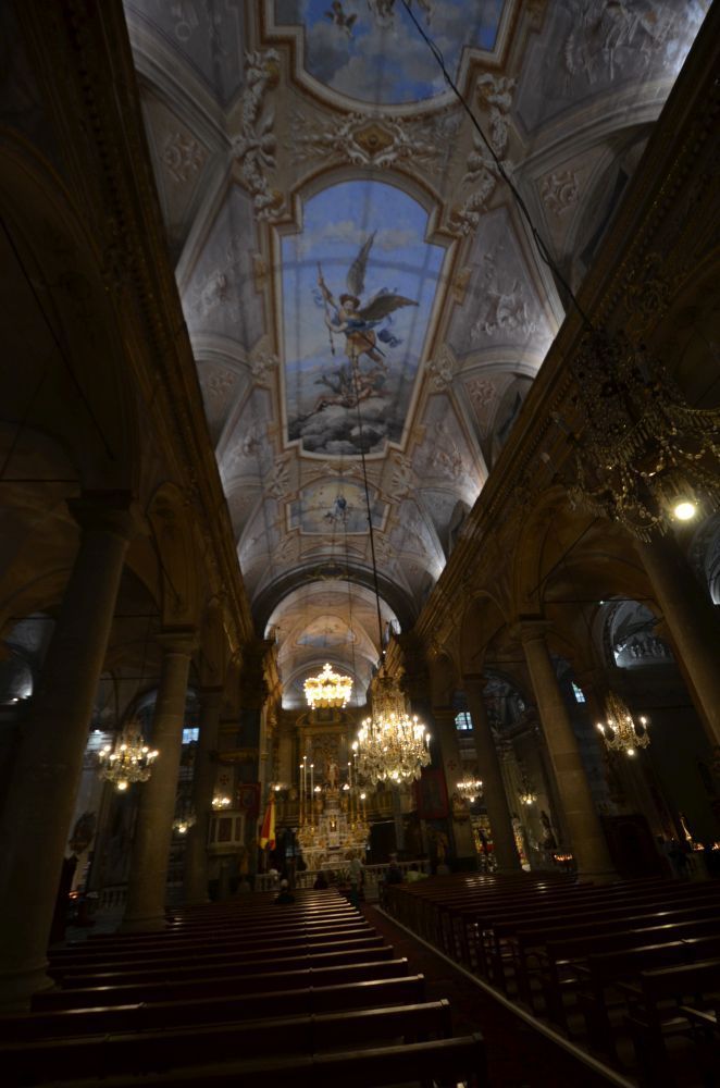 The basilica was not that easy. First, it was closed, then a funeral took place (you can see the coffin stand and flowers in a photo). The third time it worked.