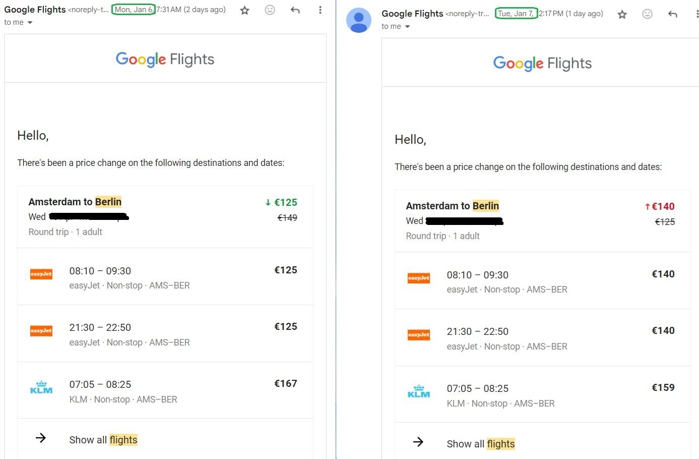 Well, I can tell you that the price for this one particular KLM AMS-BER flight dropped by €8 between Monday Jan 6 and the launch of the Real Deal Dagen on Tuesday Jan 7