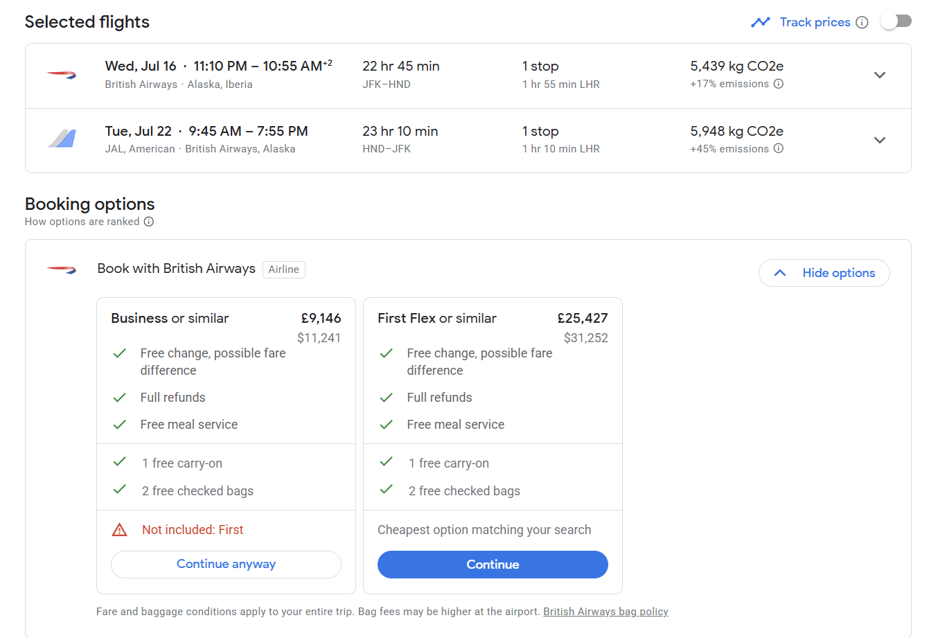 Found this amazing deal with BA F and return in JL/AA, for July.