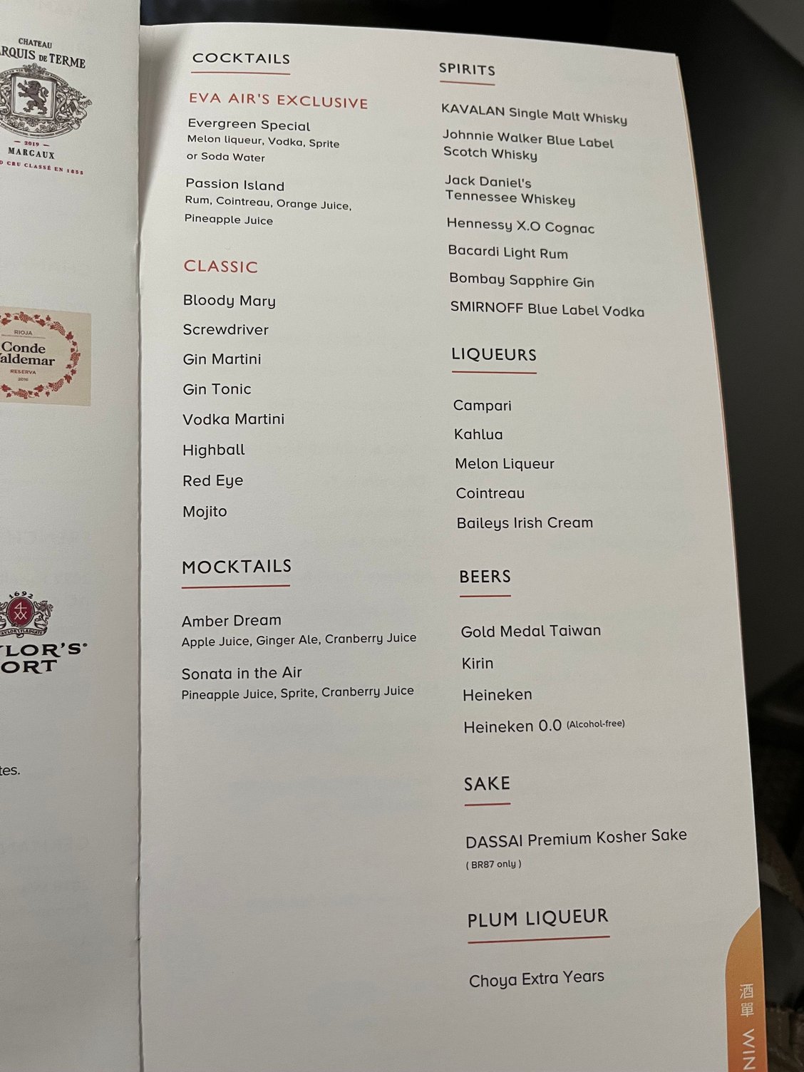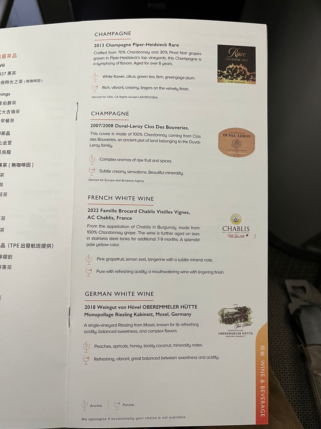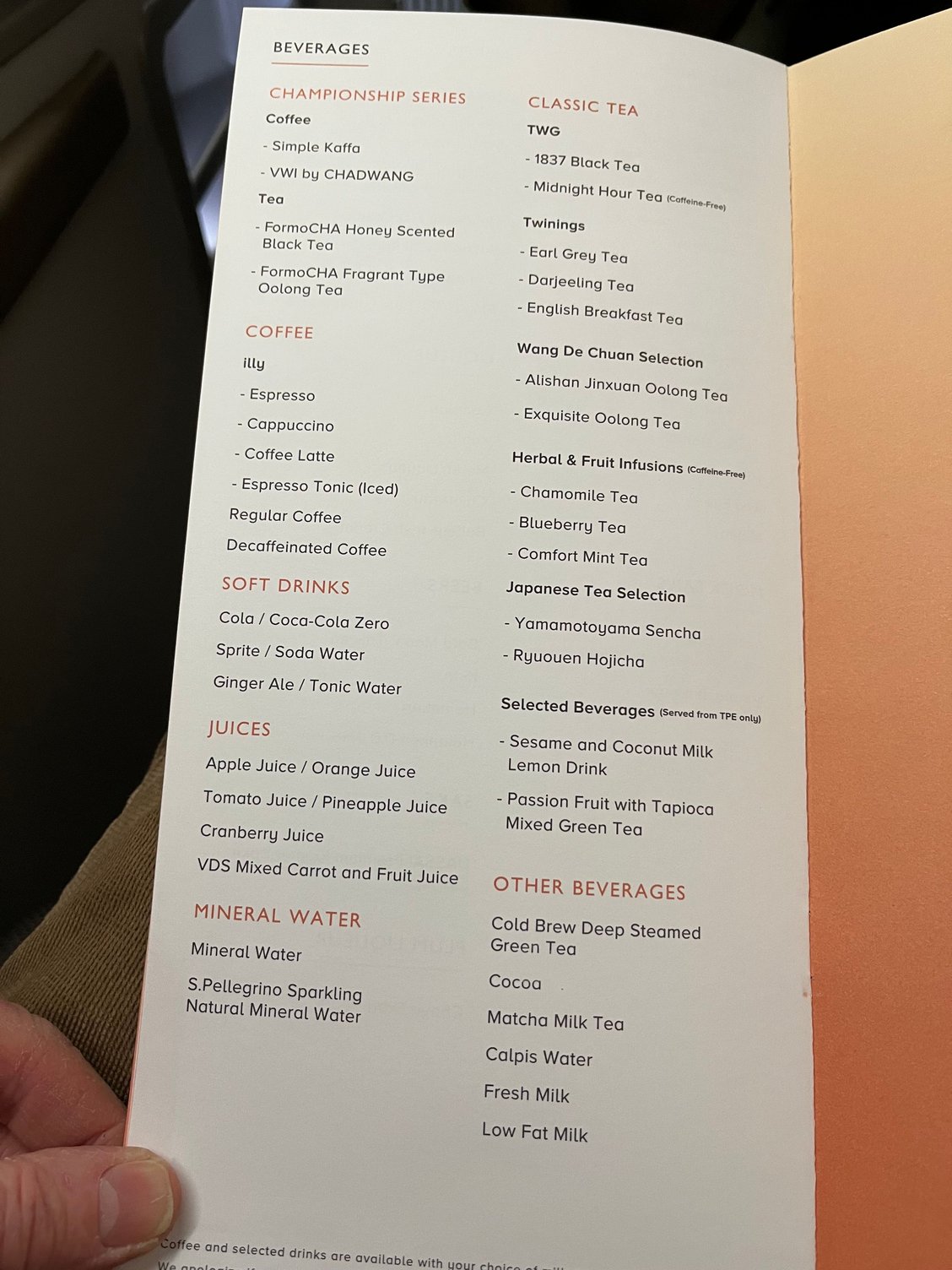 During boarding the stewardess checked my pre- ordered meal and asked for my wine selections. Well done but wine is described as French white etc rather than by name.