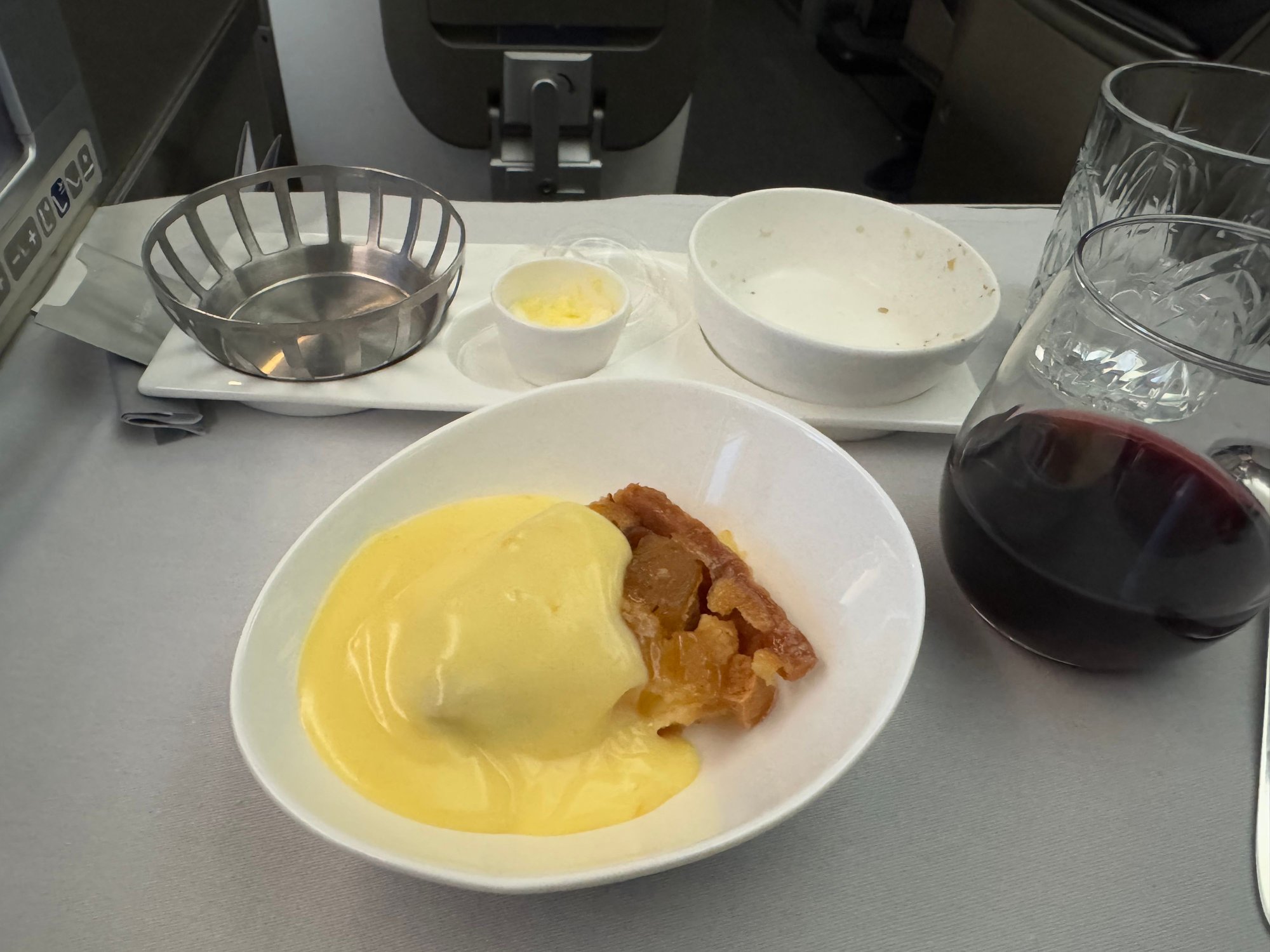 Again, another reluctant pick for my main. Went for the Grilled beef fillet. After so much decent (or better) meat in Japan, I knew this was going to dissapoint. It was fairly easy to cut into with the pretty blunt BA knife, but wholey lacking in flavour. The sauce helped with that, but vegetables were also a little lifeless. Seems so odd when you are travelling from a city was such exceptional food & flavours available so cheaply. It was of course overcooked (but I expected nothing else).