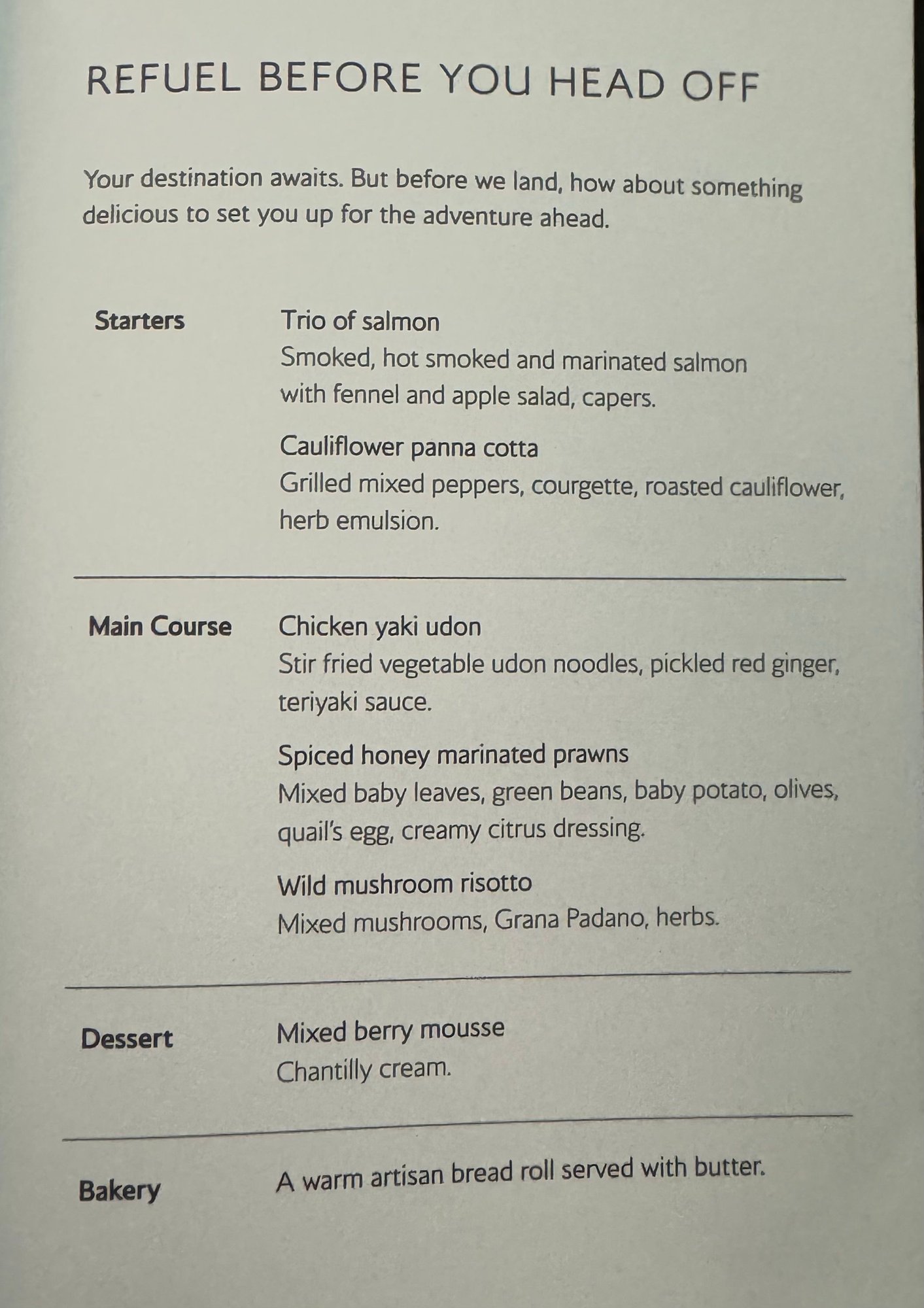 The second meal service started about 2 hours before landing. Again I struggled to pick anything I really wanted.