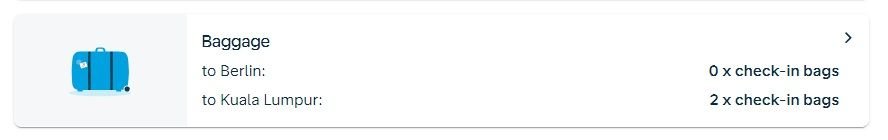 I selected that flight - in "Light" - and even when logged in, the website resolutely tells me I have no baggage allowance whatsoever on KUL-SIN-AMS-BER - while happily showing my 2 checked pieces as Platinum for the return flights which are all on KL metal: