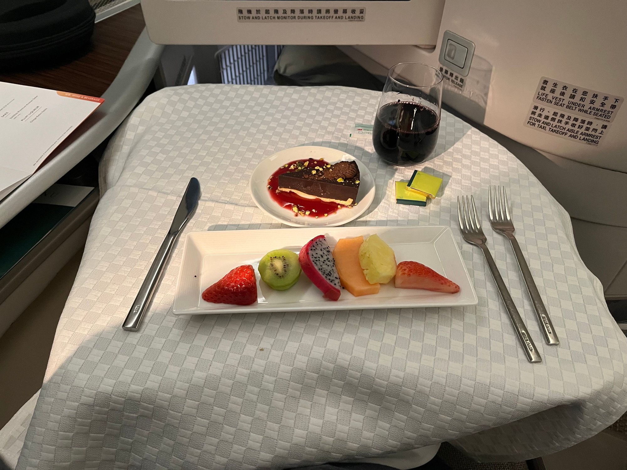 I switched to the Chateau Marquis de Terme 2019, or “The French Red” as it is known by the cabin crew! Another tumbler full and a nice wine too.