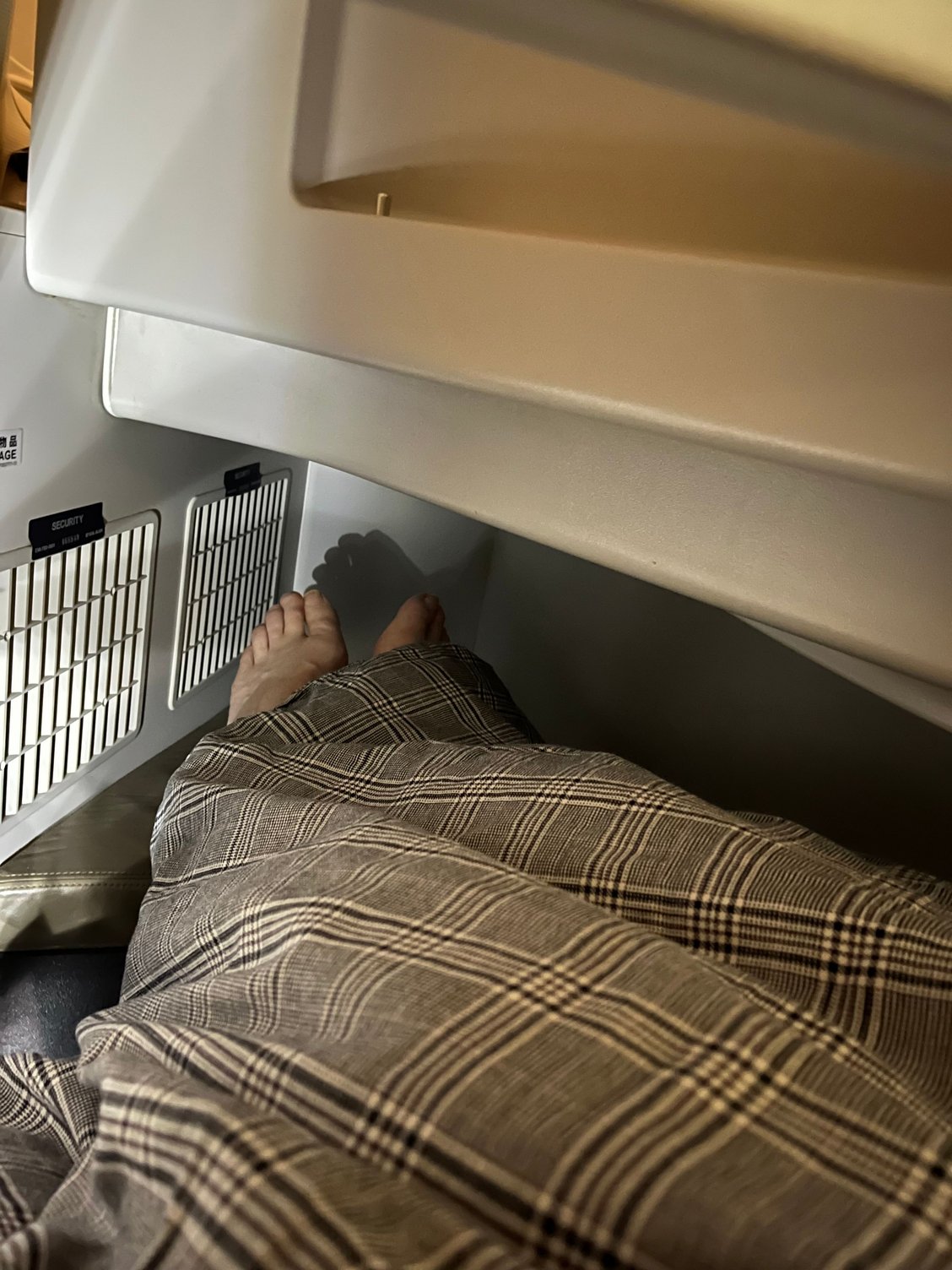 The bed seemed longer than I would have expected, my feet did not touch the end of the coffin and neither was my head next to the seat back. I am 5 foot 9 inches, 1.75m. It was also comfortable with no hard edges half way down my back. Plenty of leg room and I think this is one of the best J beds I have experienced.