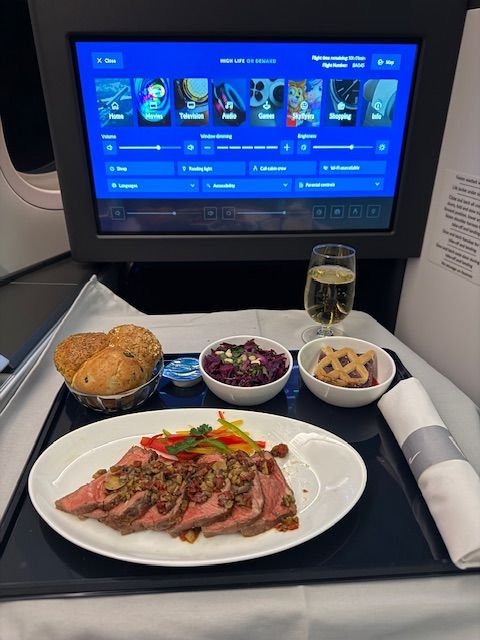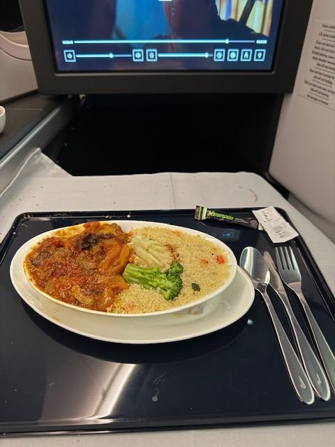 Main: Moroccan Lamb tagine and cous cous. This one is not going to win beauty awards but was by far the best KSML l've had in a long time! Very delicious lamb, melt in the mouth. Cous cous was cooked well and flavoured well. The tagine also had mystery veg (carrot? Potato?) and possibly dumplings too but unsure.