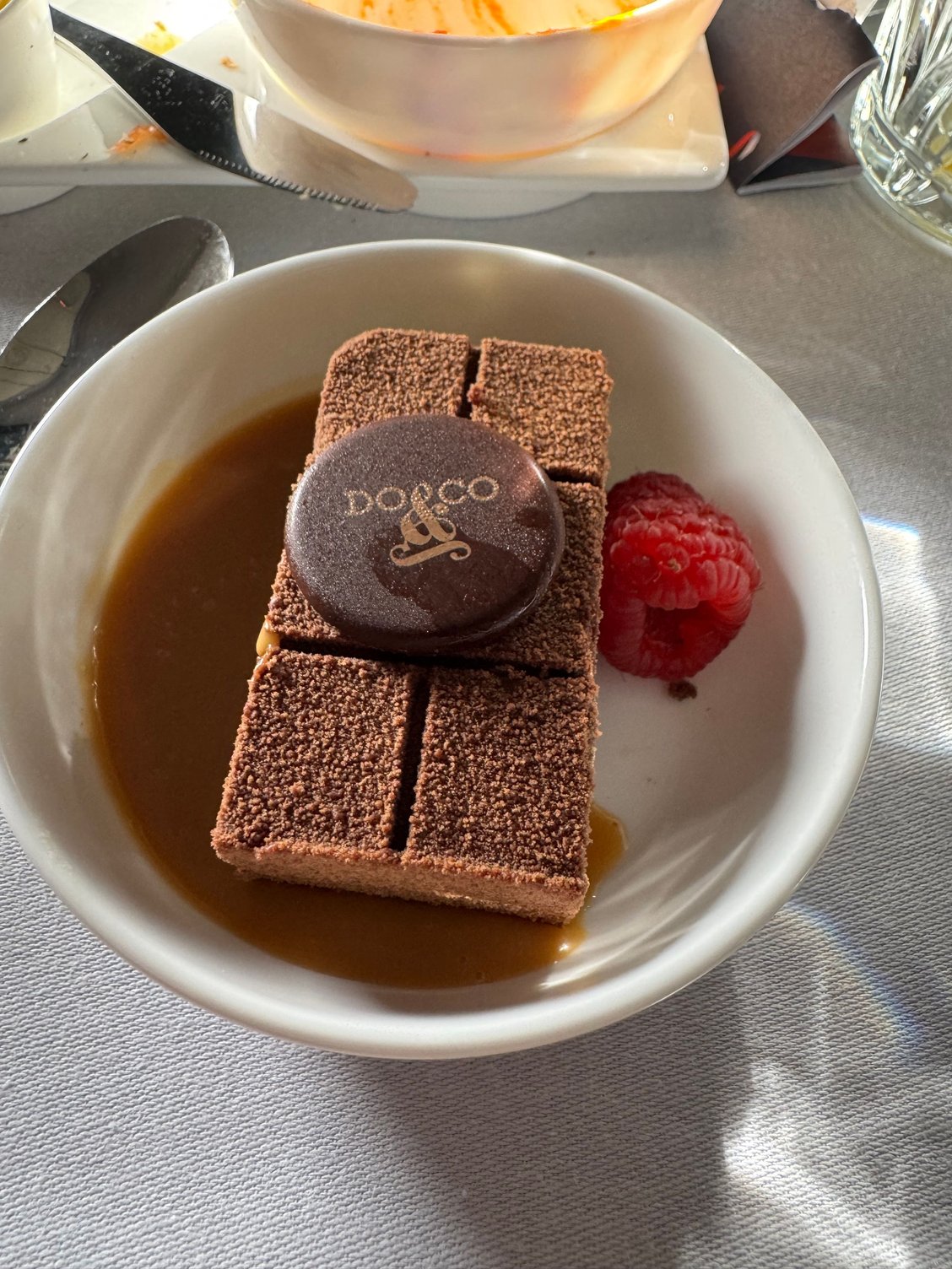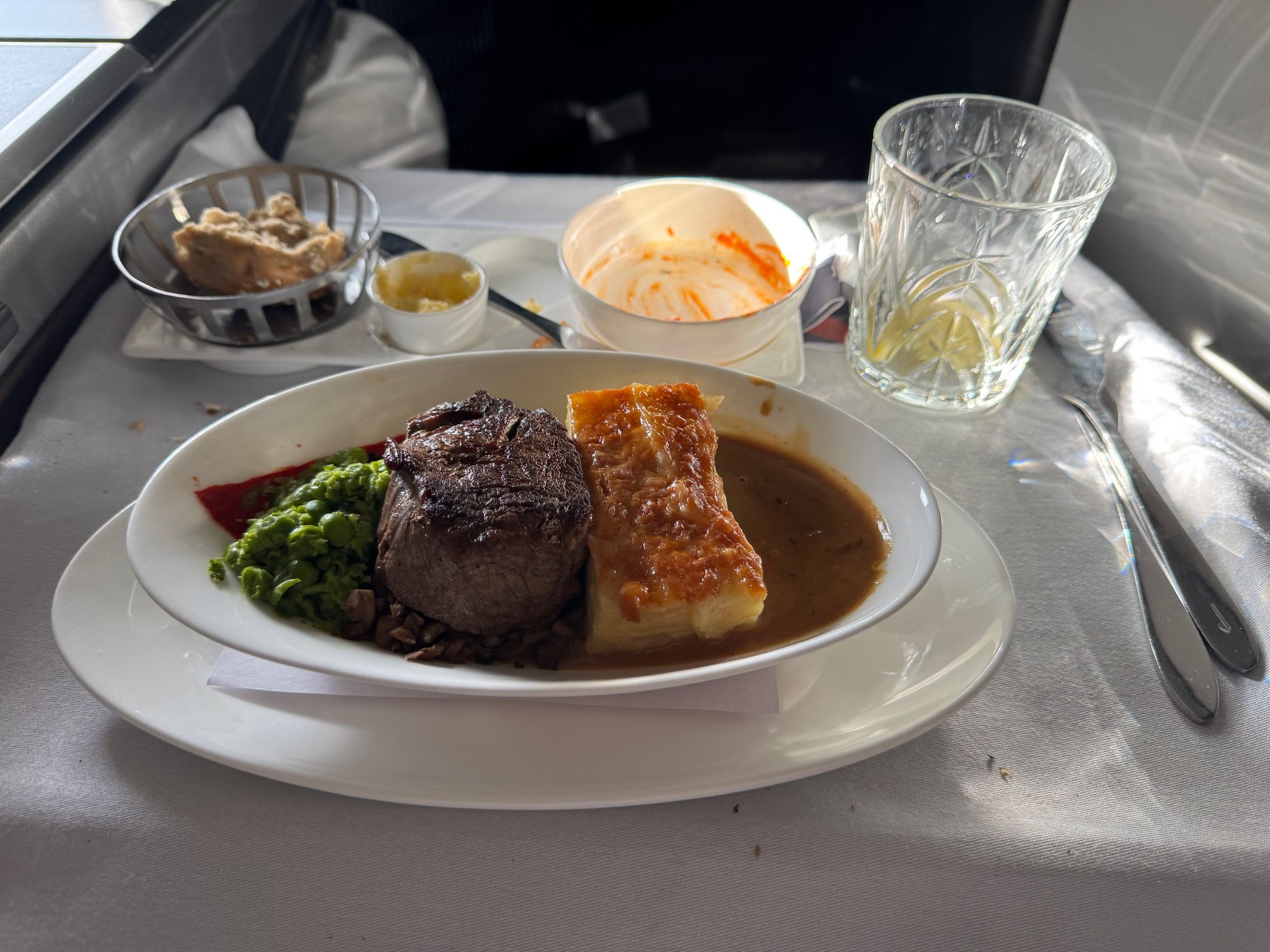 Salmon starter was excellent. Beef was well done as expected but very edible still, and potatoes were the star. Side salads was tasty. Dessert was delicious.