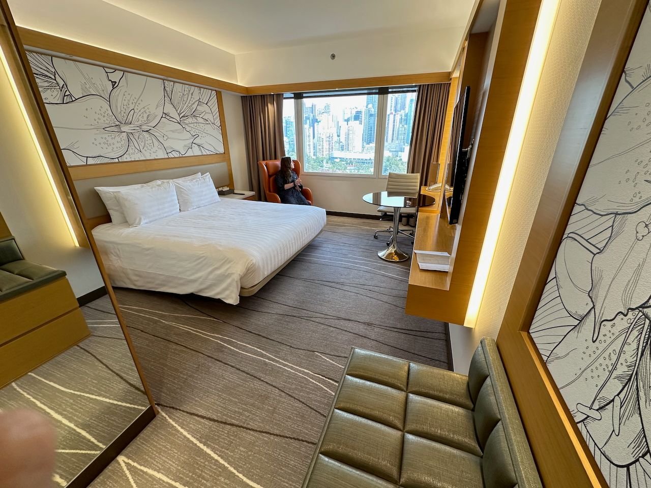 Just checked in for a four night stay. Booked a Deluxe Room, 1 King, City View. Received a Deluxe Room, 1 King, Panoramic View. They seem to have switched from Pullman to Marriott quite cleanly. Here's a few room pics and the welcome letter for Bonvoy Elite members.