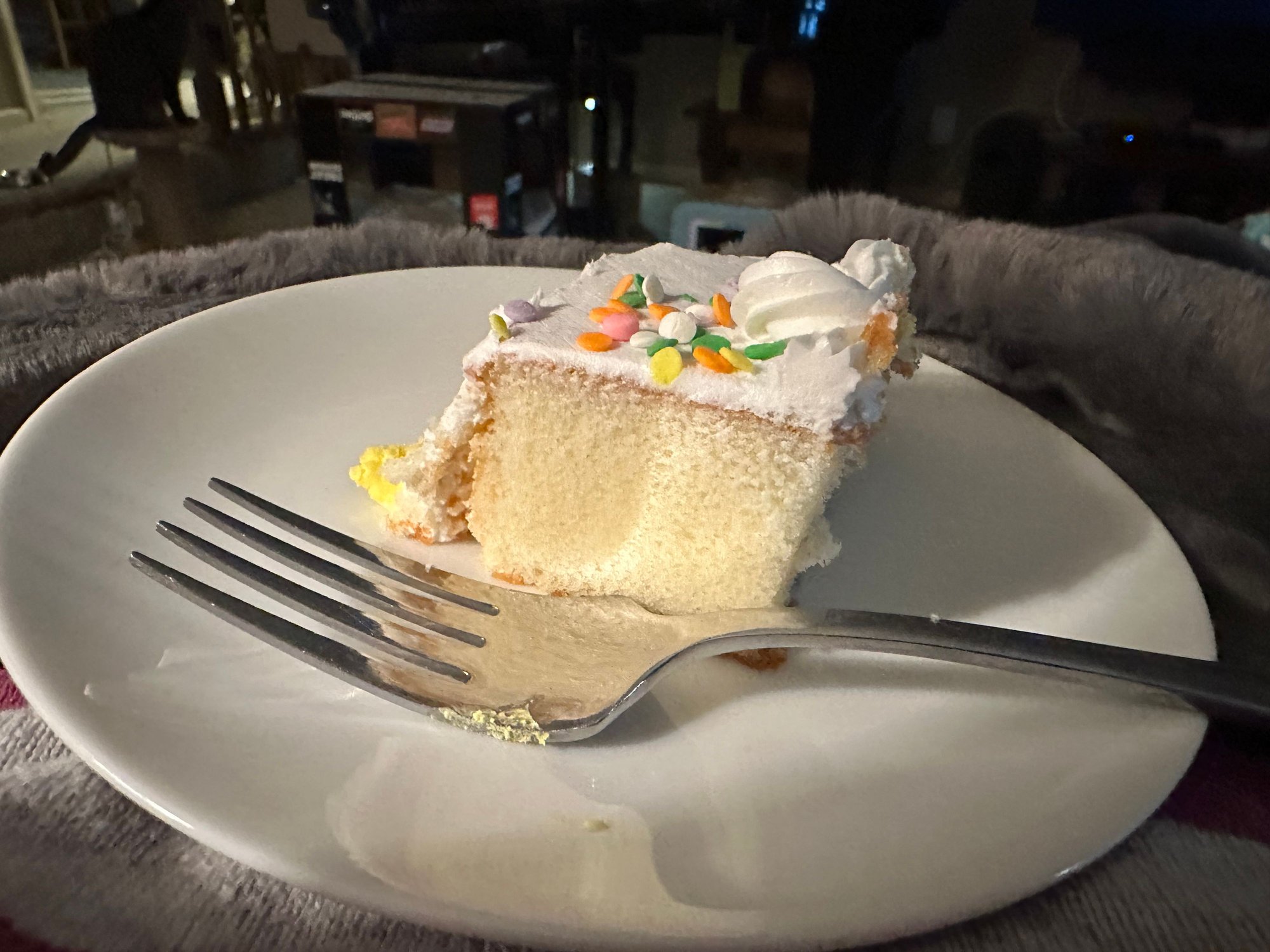 Original plans got changed to Wednesday because of the snow here, so housemate braved the roads to get Mexican grilled chicken and a birthday cake for me.