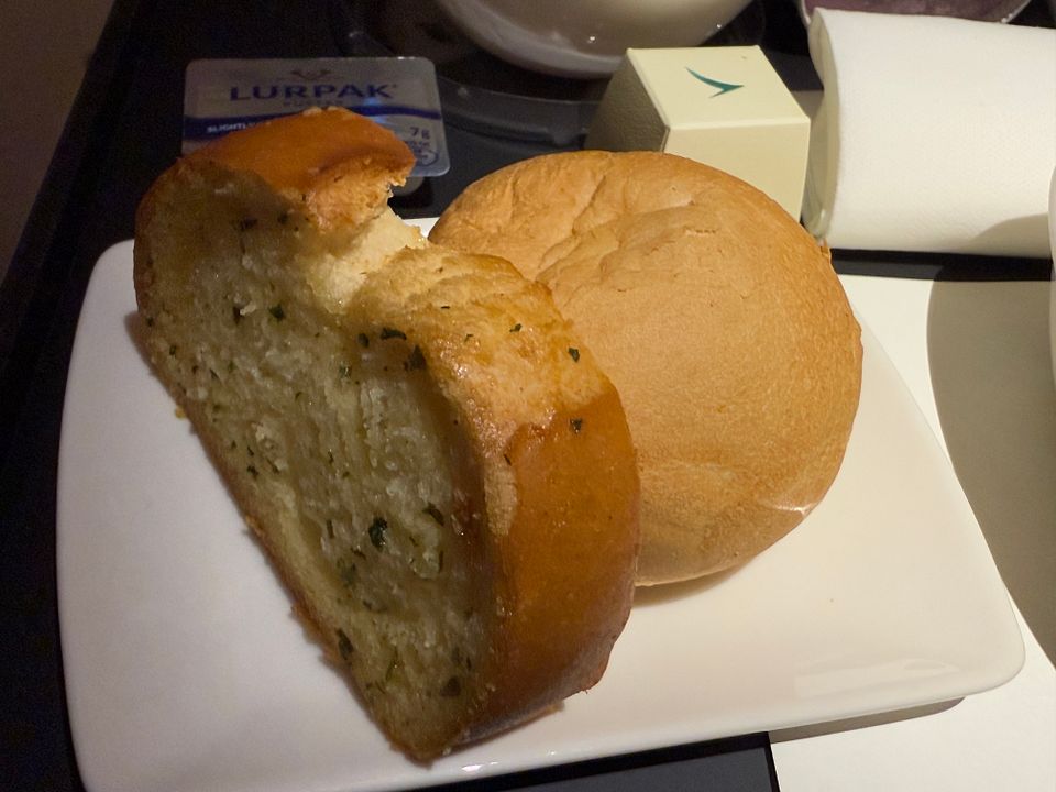 Warmed white roll & garlic bread