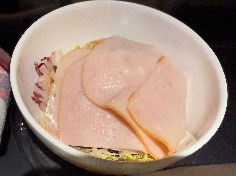 Sliced smoked turkey with vegetable quinoa salad