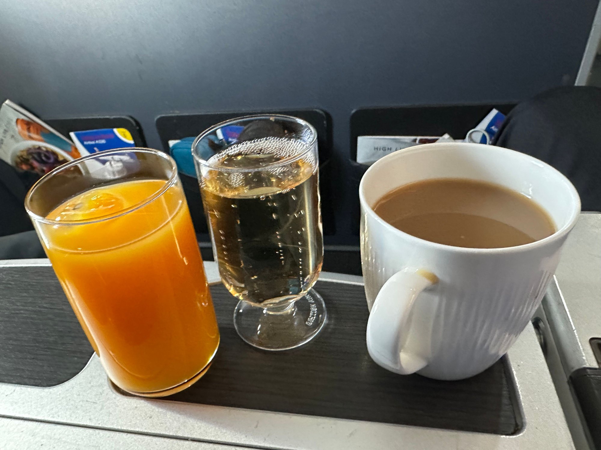 We were finally off the ground at 08:50 and the crew wasted no time in getting ready for breakfast service. There are 6 full rows in Club this morning, so 24 hungry beaks to feed.