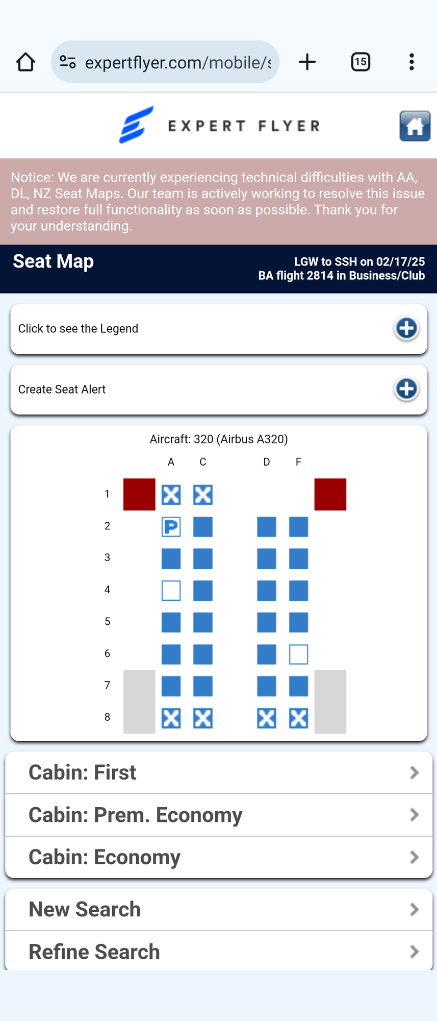 Here's the current seat map for LGW-SSH on 17th Feb, it's the only BA flight to that destination I can see. Since the OP mentions 3 seats free, I'm assuming they are in CE