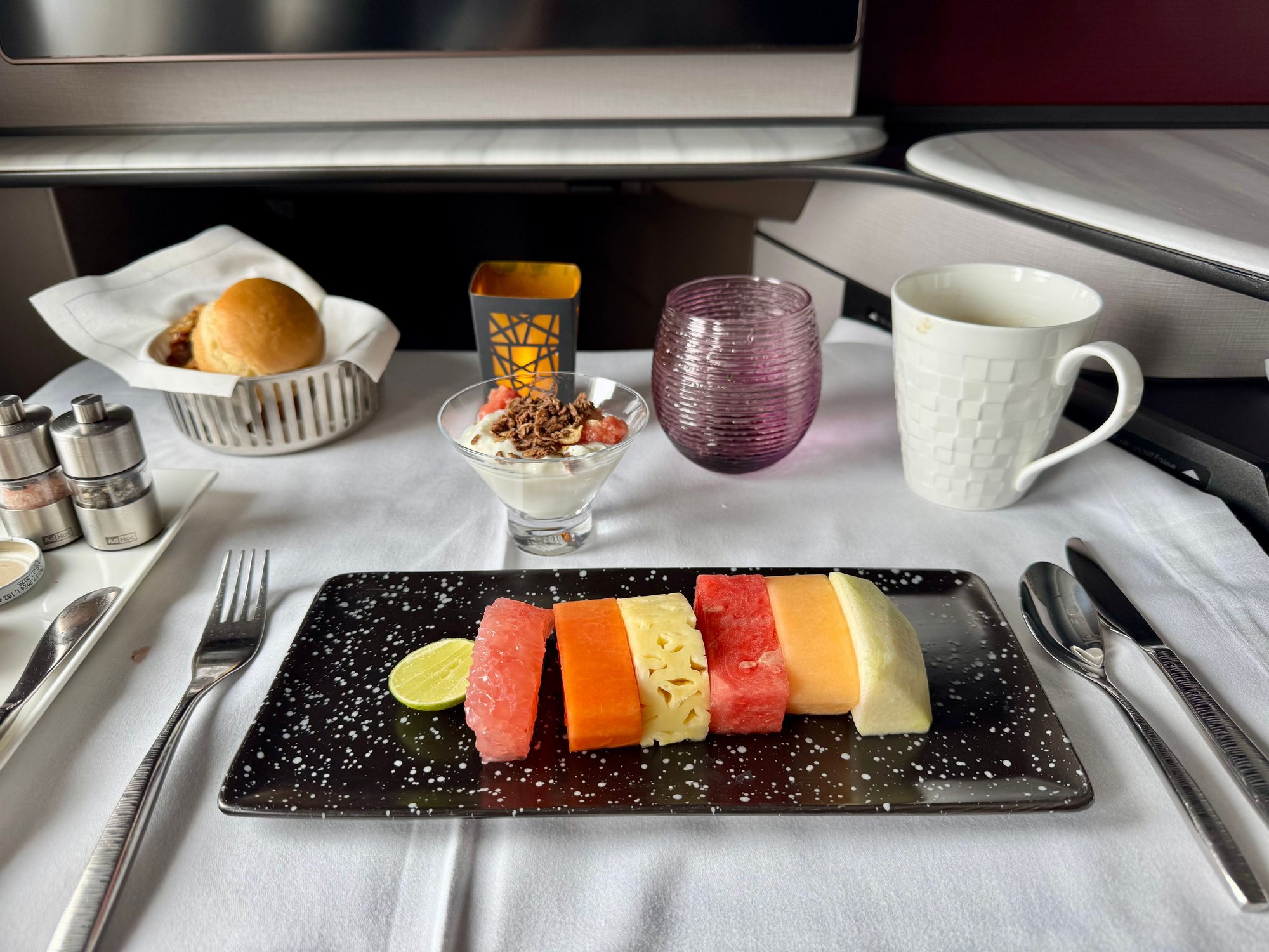 Surprise equipment switch to Qsuite T-24 before departure which made for a pleasant start to the year. I can see they have slightly expanded the menu compared to last time I took this flight summer 2024, the menu now consists of full breakfast and lunch (was lunch + light meal last year).