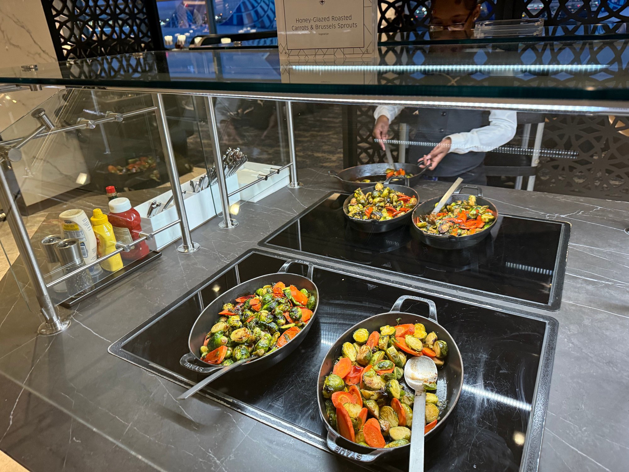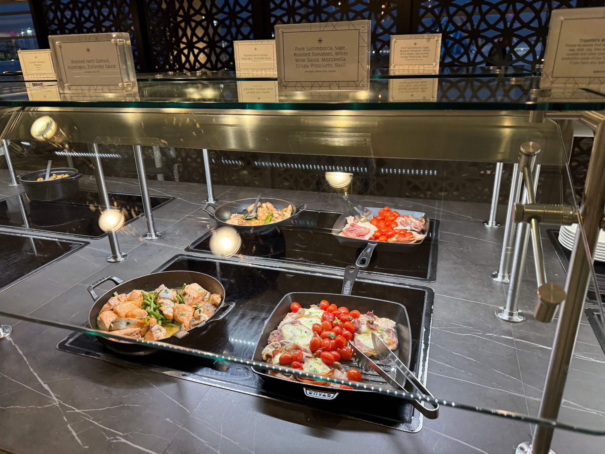 The buffet salmon and brussel sprouts is quite good and fixed a small plate on the wait for the dining room.