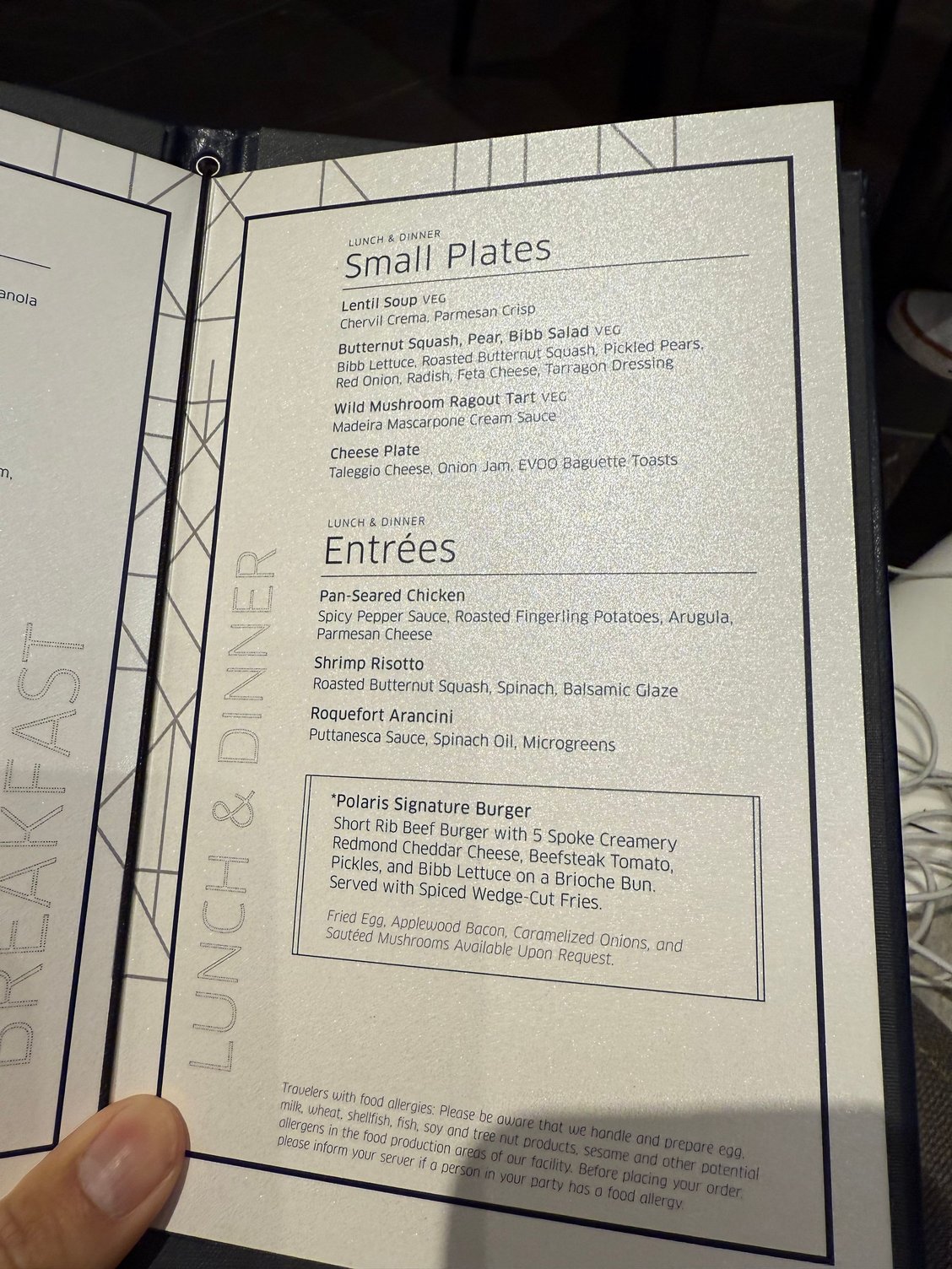 Dining room wait was quotes as 25m but ended up being 36m which cut close to my boarding time more than I liked although still was able to get in a 3 course meal but came prepared with what I wanted to order in advance. I was seated for probably 5-10 min before someone came to take my order.