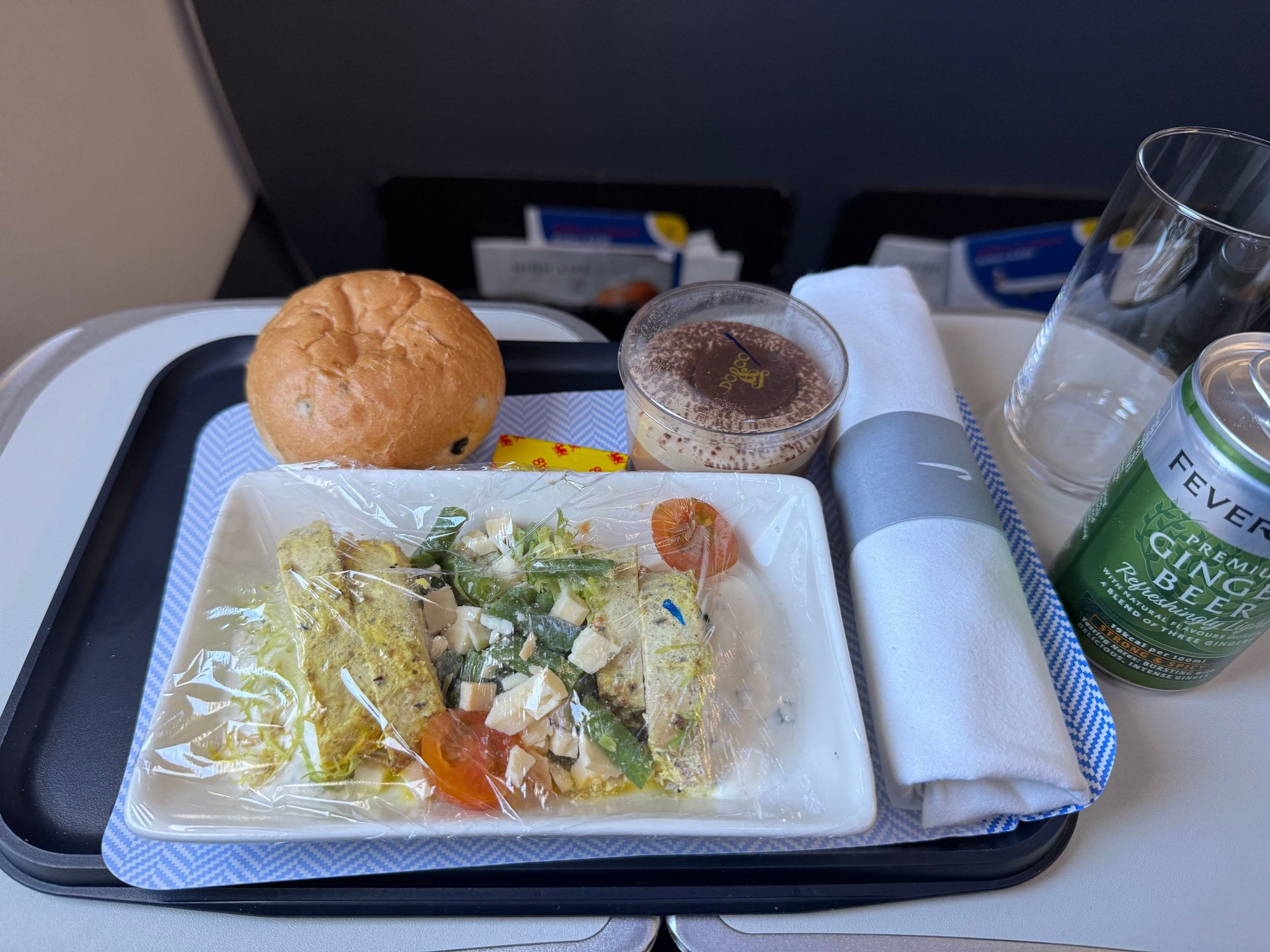 Back from Manchester, no menus but the choices were this chicken salad or a poke bowl. 2.30pm departure but the aircraft had been in Manchester overnight so I assume this was nigh-stopped catering hence the small tray and cling-wrap.