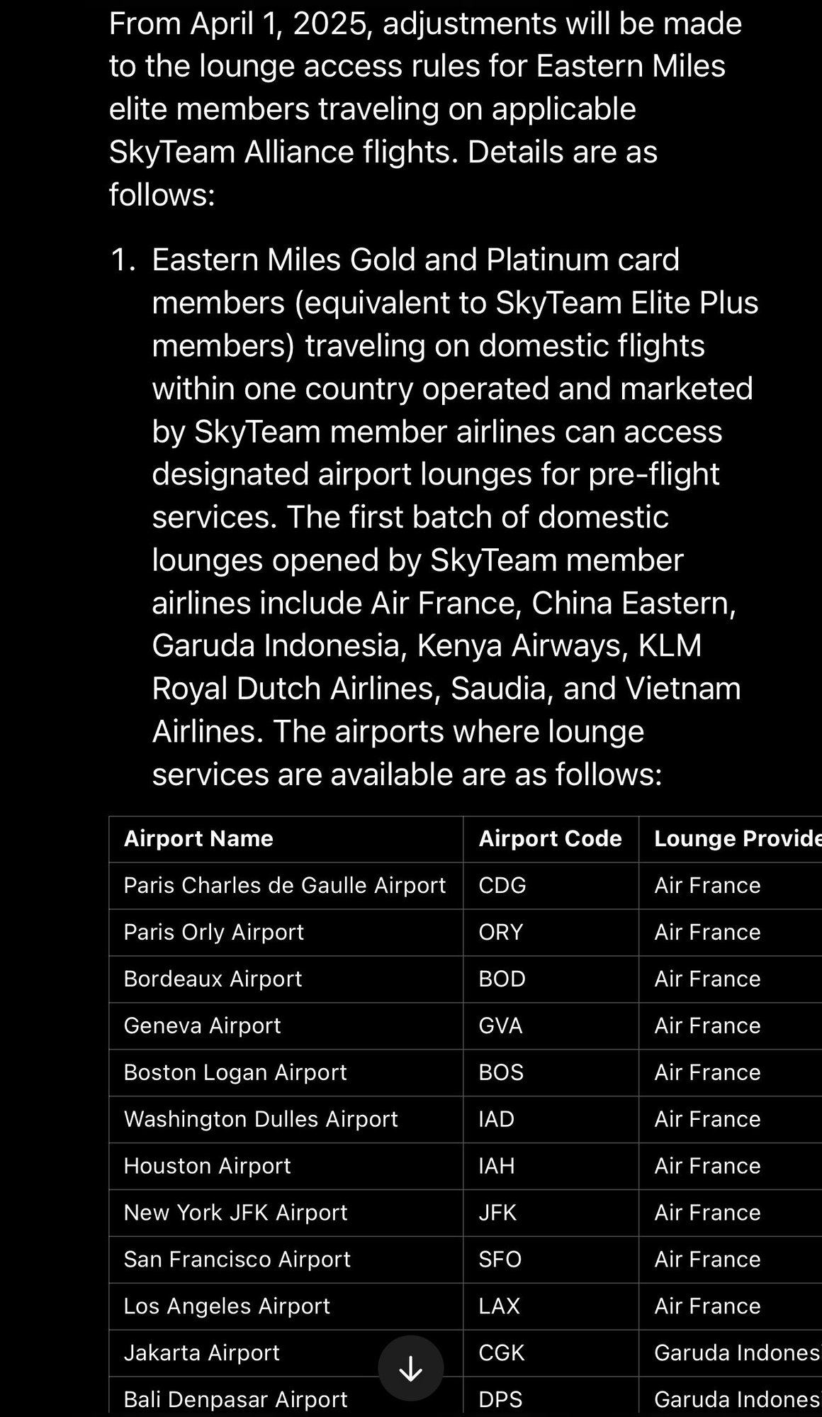 This is NOT a MU policy change. It’s definitely SkyTeam wise. Delta has no lounge participating in this program yet. But according to MU announcement, this change involves Air France lounge in CDG,/SFO/JFK etc KLM lounge in IAH, Garuda lounge in CGK, Kenya lounge in NBO. And more…