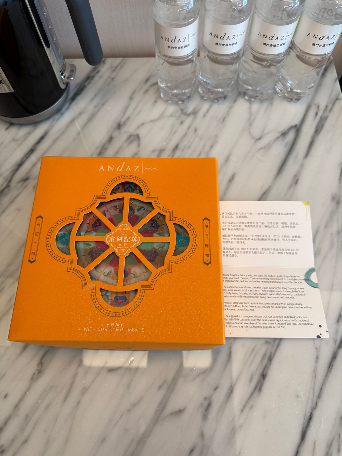 - Large box of local sweets and later some tangerines as welcome gift