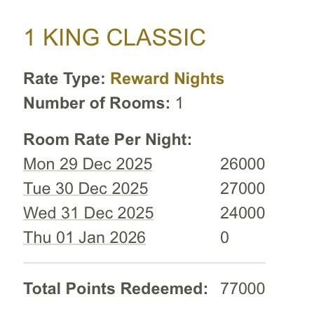 Of course I also checked other hotels in the region to see whether they offered similar great end-of-schedule deals. The only one that had deals comparable to IC Phu Quoc was IC Sanur. Apart from that, all guaranteed-to-sell-out-for-NYE hotels I looked at had pricing in the $250-300 worth of points range, which likely still represents a discount compared to revenue rates they're likely to go for -- although as discussed upthread, much of this stems from the Chase 4NF discount, and really isn't the kind of "must buy" redemption deal I enjoyed the last few years.