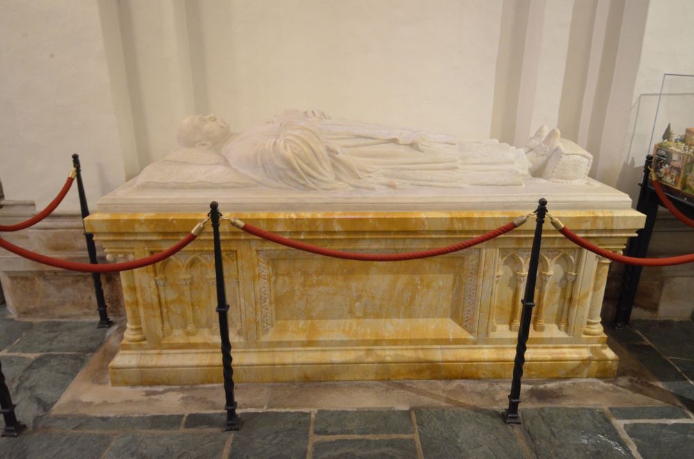 The interior is also neo-Gothic, with several memorials.