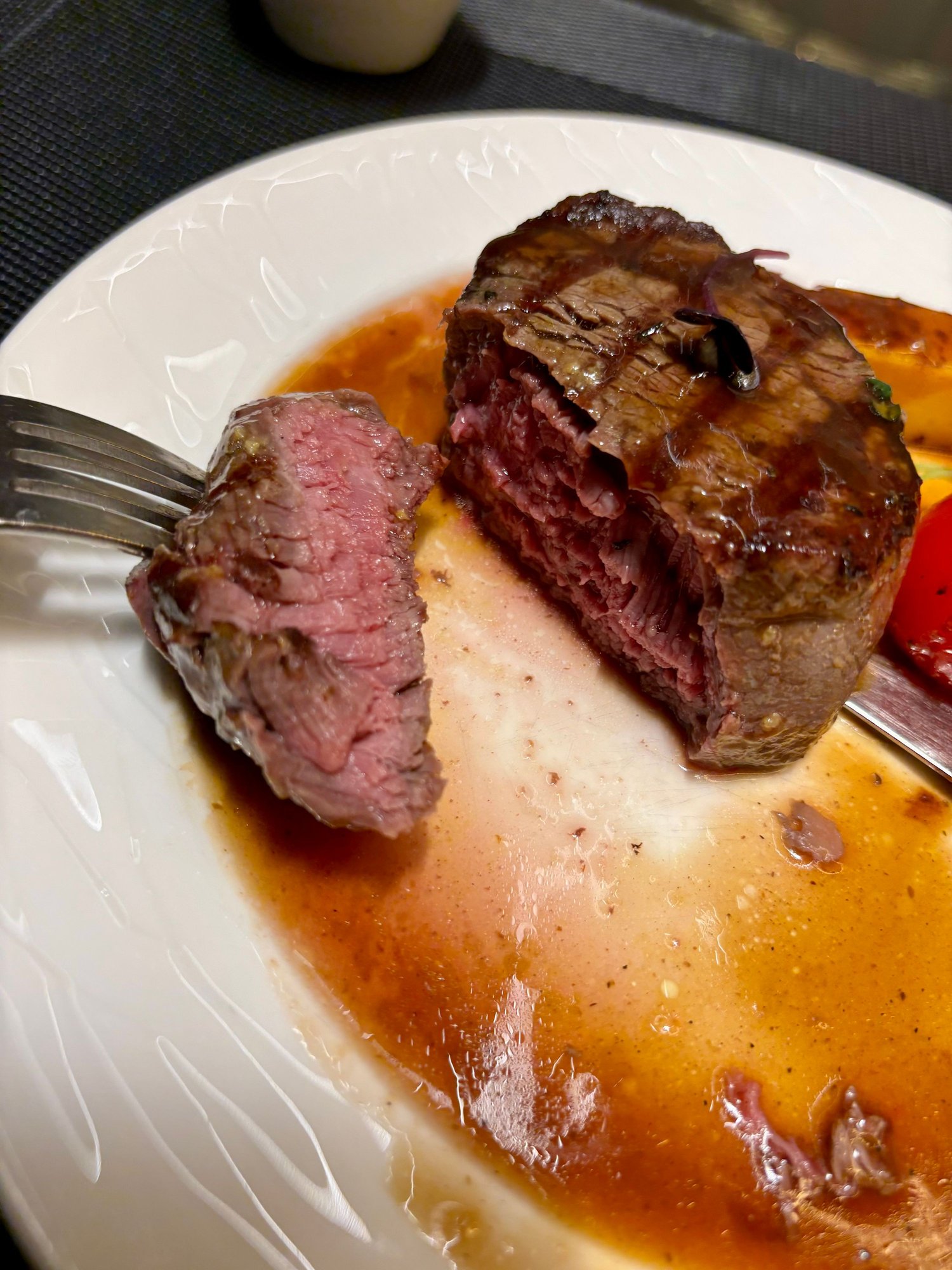 Cooked medium rare and very juicy and tender
